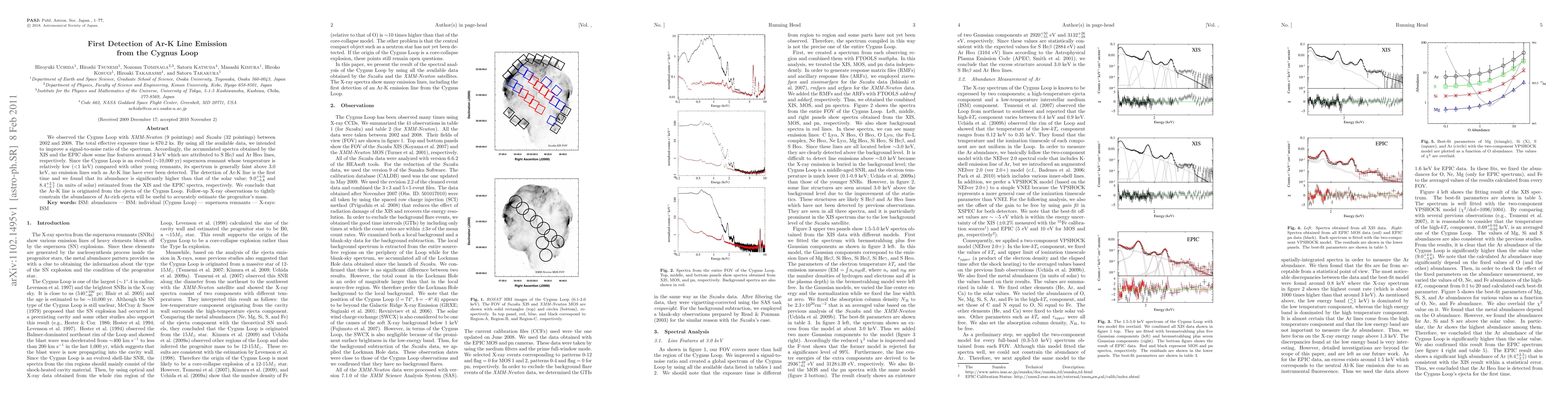 Researchers detected the Ar-K line emission for the first time in the Cygnus Loop supernova remnant using XMM-Newton and Suzaku data. The findings indicate an Ar abundance significantly higher than solar values, suggesting the line originates from the remnant's ejecta and providing insights into the progenitor star's mass.