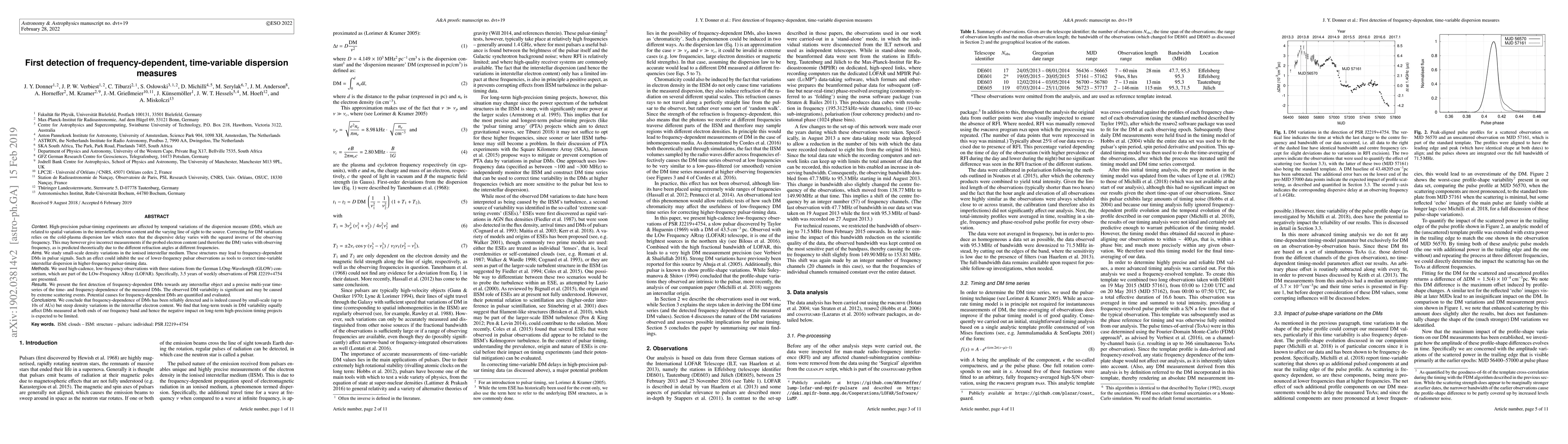 Researchers detect frequency-dependent dispersion measures in pulsar signals for the first time, revealing small-scale density variations in interstellar electron content. This finding has implications for high-precision timing projects.