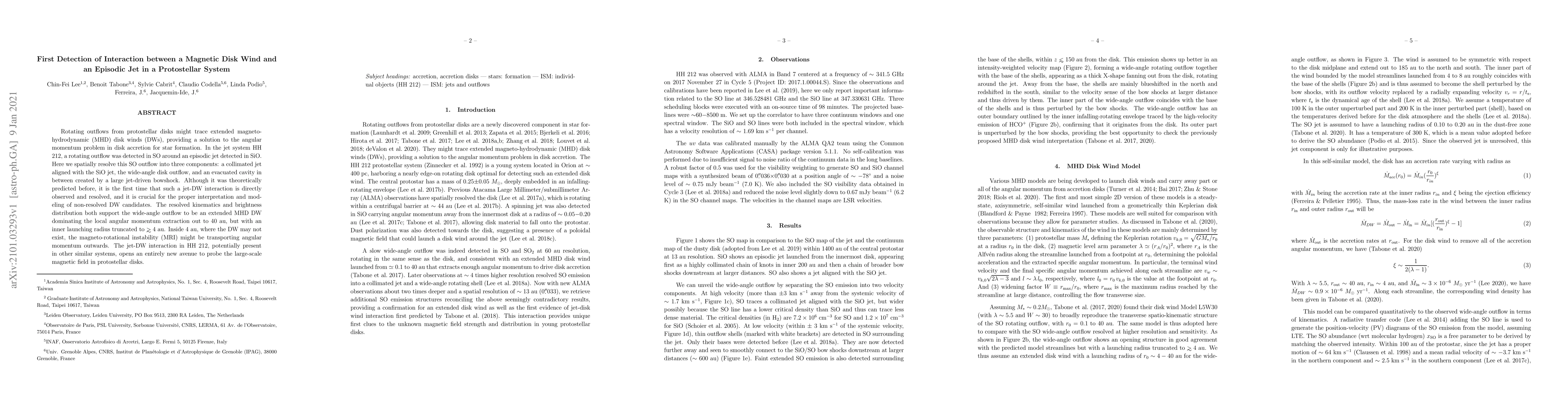 This paper reports the first direct observation of an interaction between a magnetic disk wind and an episodic jet in the protostellar system HH 212, revealing three components: a collimated jet, a wide-angle disk outflow, and a bowshock-created cavity. This interaction provides crucial insights into angular momentum transport and magnetic field dynamics in protostellar systems.