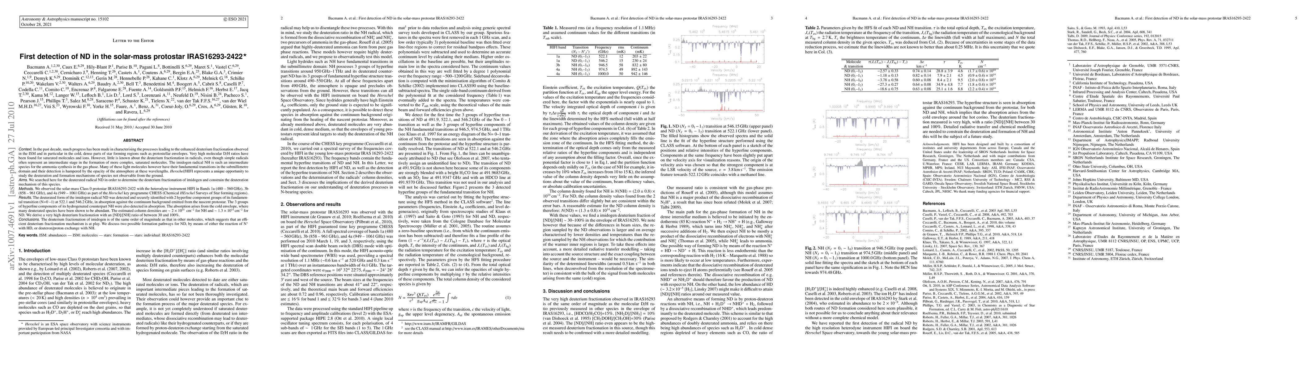 In the past decade, much progress has been made in characterising the processes leading to the enhanced deuterium fractionation observed in the ISM and in particular in the cold, dense parts of star forming regions such as protostellar envelopes. Very high molecular D/H ratios have been found for saturated molecules and ions. However, little is known about the deuterium fractionation in radicals, even though simple radicals often represent an intermediate stage in the formation of more complex, saturated molecules. The imidogen radical NH is such an intermediate species for the ammonia synthesis in the gas phase. Herschel/HIFI represents a unique opportunity to study the deuteration and formation mechanisms of such species, which are not observable from the ground. We searched here for the deuterated radical ND in order to determine the deuterium fractionation of imidogen and constrain the deuteration mechanism of this species. We observed the solar-mass Class 0 protostar IRAS16293-2422 with the heterodyne instrument HIFI as part of the Herschel key programme CHESS (Chemical HErschel Surveys of Star forming regions). The deuterated form of the imidogen radical ND was detected and securely identified with 2 hyperfine component groups of its fundamental transition in absorption against the continuum background emitted from the nascent protostar. The 3 groups of hyperfine components of its hydrogenated counterpart NH were also detected in absorption. We derive a very high deuterium fractionation with an [ND]/[NH] ratio of between 30 and 100%. The deuterium fractionation of imidogen is of the same order of magnitude as that in other molecules, which suggests that an efficient deuterium fractionation mechanism is at play. We discuss two possible formation pathways for ND, by means of either the reaction of N+ with HD, or deuteron/proton exchange with NH.