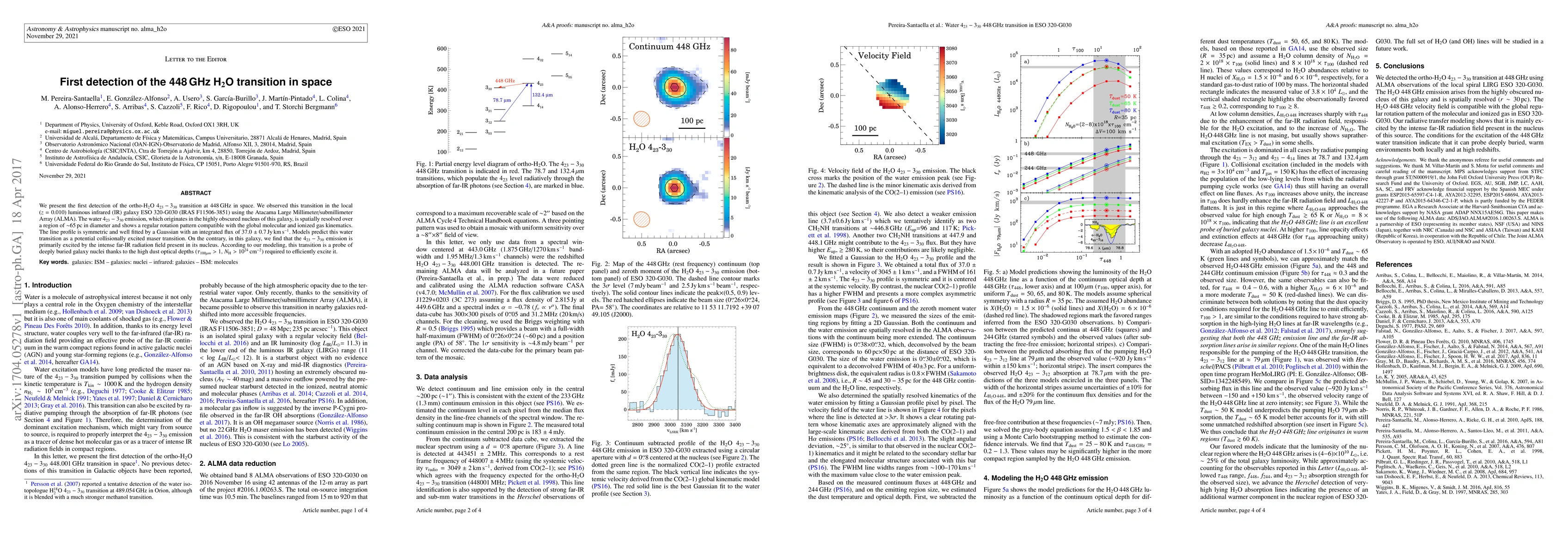 We present the first detection of the ortho-H2O 4_23-3_30 transition at 448 GHz in space. We observed this transition in the local (z = 0.010) luminous infrared (IR) galaxy ESO 320-G030 (IRAS F11506-3851) using the Atacama Large Millimeter/submillimeter Array (ALMA). The water 4_23-3_30 emission, which originates in the highly obscured nucleus of this galaxy, is spatially resolved over a region of ~65 pc in diameter and shows a regular rotation pattern compatible with the global molecular and ionized gas kinematics. The line profile is symmetric and well fitted by a Gaussian with an integrated flux of 37.0 +- 0.7 Jy km s-1 . Models predict this water transition as a potential collisionally excited maser transition. On the contrary, in this galaxy, we find that the 4_23-3_30 emission is primarily excited by the intense far-IR radiation field present in its nucleus. According to our modeling, this transition is a probe of deeply buried galaxy nuclei thanks to the high dust optical depths (tau_100{\mu}m > 1, N_H > 1e24 cm-2) required to efficiently excite it.