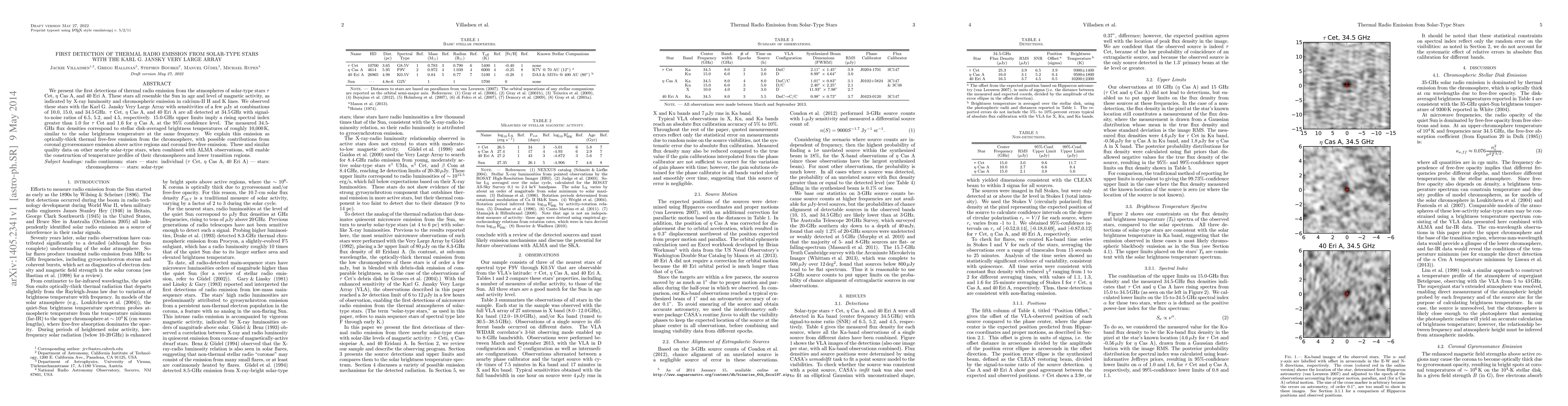 The study detects thermal radio emission from solar-type stars for the first time, with brightness temperatures similar to those of the Sun, suggesting optically-thick thermal free-free emission from their chromospheres.