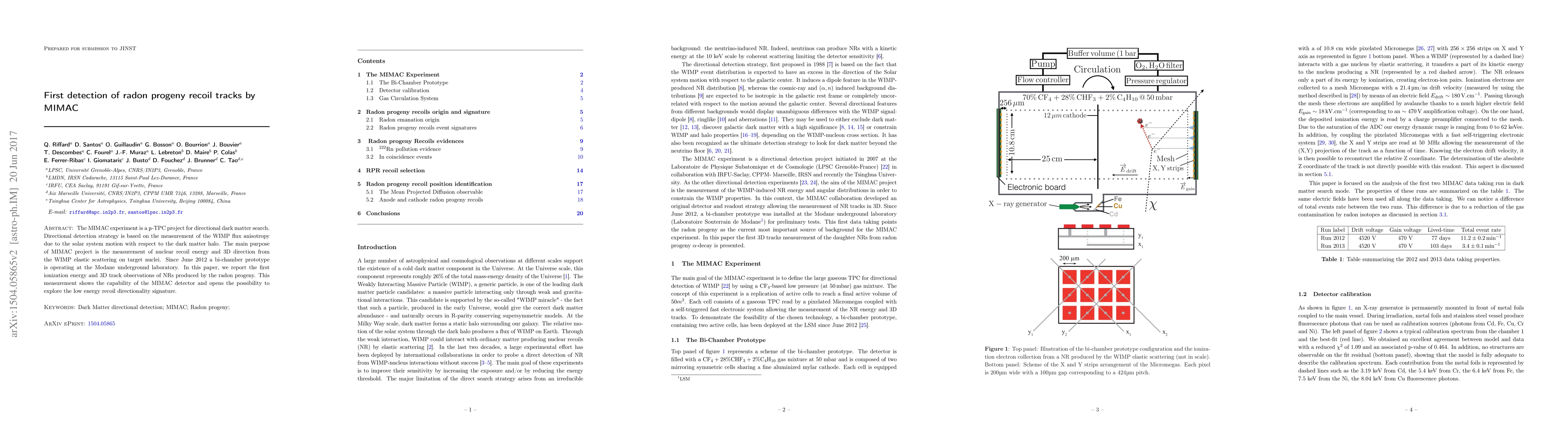 The MIMAC experiment successfully detects ionization energy and 3D tracks of radon progeny recoils, demonstrating the detector's capability for directional dark matter search and paving the way for low energy recoil directionality studies.