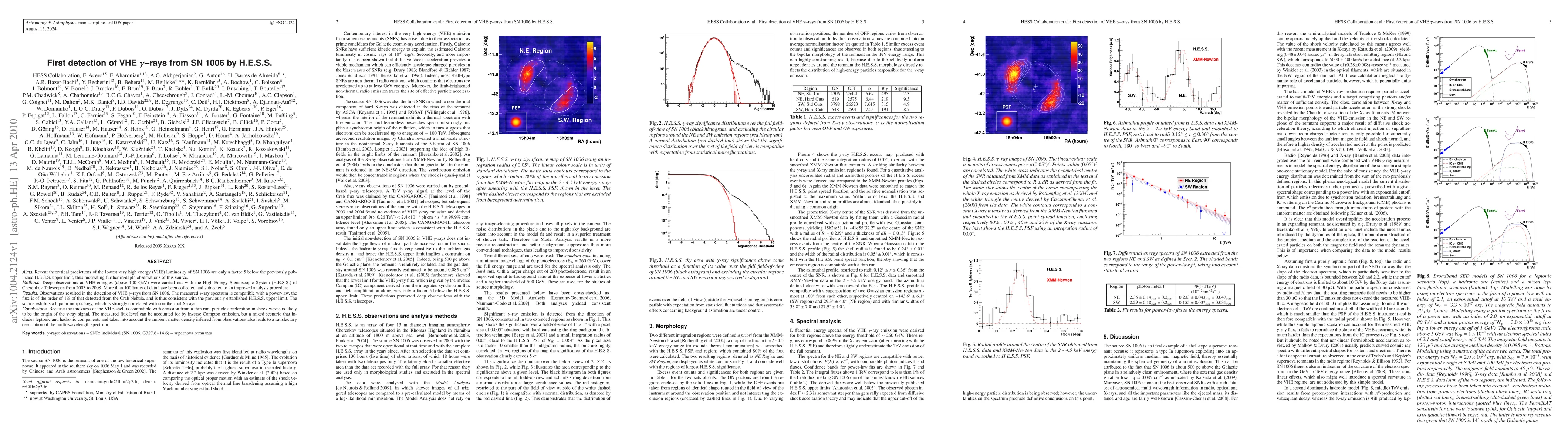The H.E.S.S. observatory detected VHE gamma-rays from SN 1006, confirming theoretical predictions and revealing a bipolar morphology correlated with non-thermal X-rays. The gamma-ray flux is consistent with inverse Compton emission and possibly a combination of leptonic and hadronic processes.