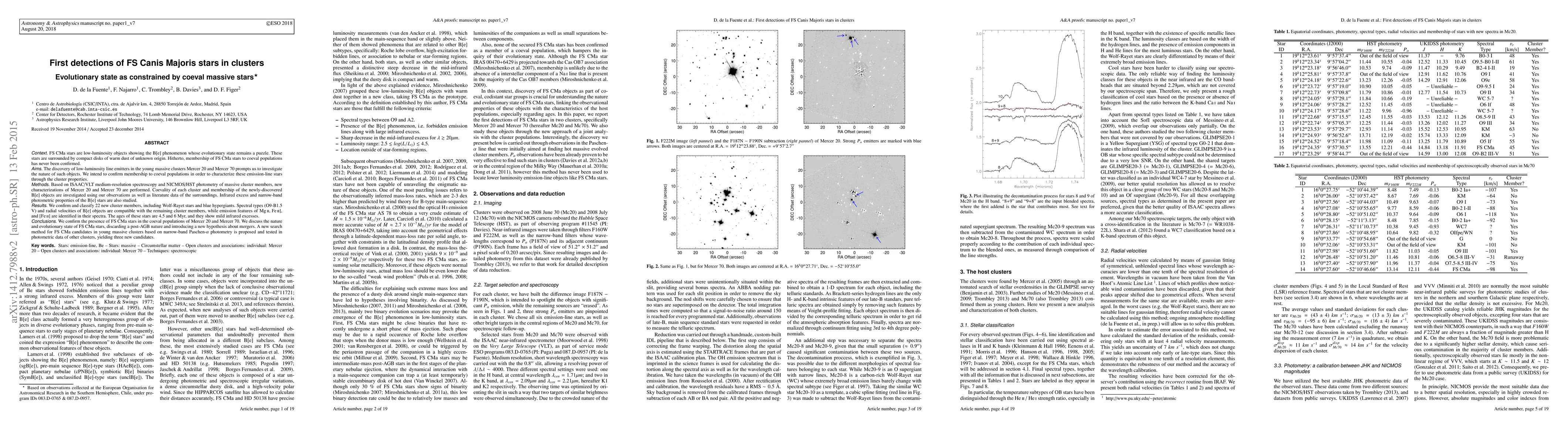 FS CMa stars are low-luminosity objects showing the B[e] phenomenon whose evolutionary state remains a puzzle. These stars are surrounded by compact disks of warm dust of unknown origin. Hitherto, membership of FS CMa stars to coeval populations has never been confirmed. The discovery of low-luminosity line emitters in the young massive clusters Mercer 20 and Mercer 70 prompts us to investigate the nature of such objects. We intend to confirm membership to coeval populations in order to characterize these emission-line stars through the cluster properties. Based on ISAAC/VLT medium-resolution spectroscopy and NICMOS/HST photometry of massive cluster members, new characterizations of Mercer 20 and Mercer 70 are performed. Coevality of each cluster and membership of the newly-discovered B[e] objects are investigated using our observations as well as literature data of the surroundings. Infrared excess and narrow-band photometric properties of the B[e] stars are also studied. We confirm and classify 22 new cluster members, including Wolf-Rayet stars and blue hypergiants. Spectral types (O9-B1.5 V) and radial velocities of B[e] objects are compatible with the remaining cluster members, while emission features of Mg II, Fe II], and [Fe II] are identified in their spectra. The ages of these stars are 4.5 and 6 Myr, and they show mild infrared excesses. We confirm the presence of FS CMa stars in the coeval populations of Mercer 20 and Mercer 70. We discuss the nature and evolutionary state of FS CMa stars, discarding a post-AGB nature and introducing a new hypothesis about mergers. A new search method for FS CMa candidates in young massive clusters based on narrow-band Paschen-alpha photometry is proposed and tested in photometric data of other clusters, yielding three new candidates.