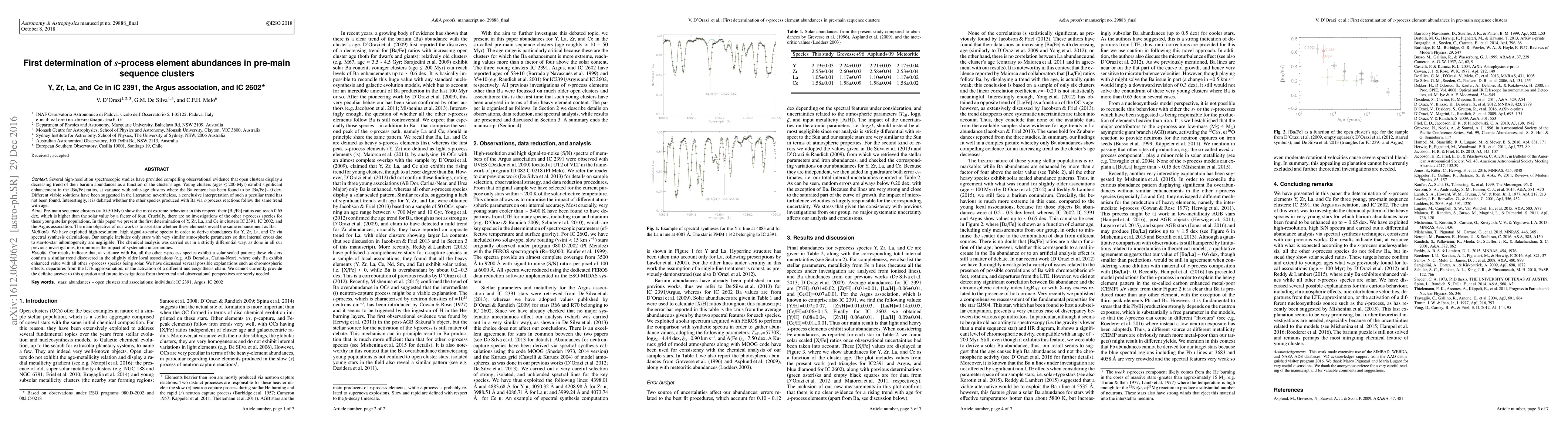 This paper investigates the abundances of s-process elements Y, Zr, La, and Ce in young pre-main sequence clusters IC 2391, IC 2602, and the Argus association, finding that unlike Ba, these elements do not exhibit significant enhancement, suggesting a different nucleosynthesis process or observational bias. Future theoretical and observational studies are needed to clarify these discrepancies.
