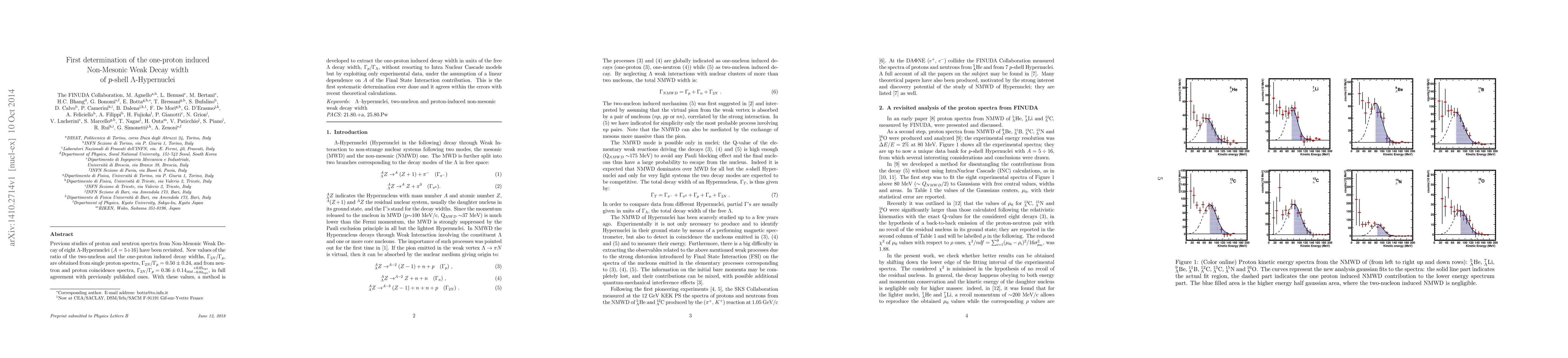 Previous studies of proton and neutron spectra from Non-Mesonic Weak Decay of eight Lambda-Hypernuclei (A = 5-16) have been revisited. New values of the ratio of the two-nucleon and the one-proton induced decay widths, Gamma_2N/Gamma_p, are obtained from single proton spectra, Gamma_2N/Gamma_p = 0.50 +/- 0.24, and from neutron and proton coincidence spectra, Gamma_2N/Gamma_p = 0.36 +/- 0.14stat +0.05sys -0.04sys , in full agreement with previously published ones. With these values, a method is developed to extract the one-proton induced decay width in units of the free Lambda decay width, Gamma_p/Gamma_Lambda, without resorting to Intra Nuclear Cascade models but by exploiting only experimental data, under the assumption of a linear dependence on A of the Final State Interaction contribution. This is the first systematic determination ever done and it agrees within the errors with recent theoretical calculations.