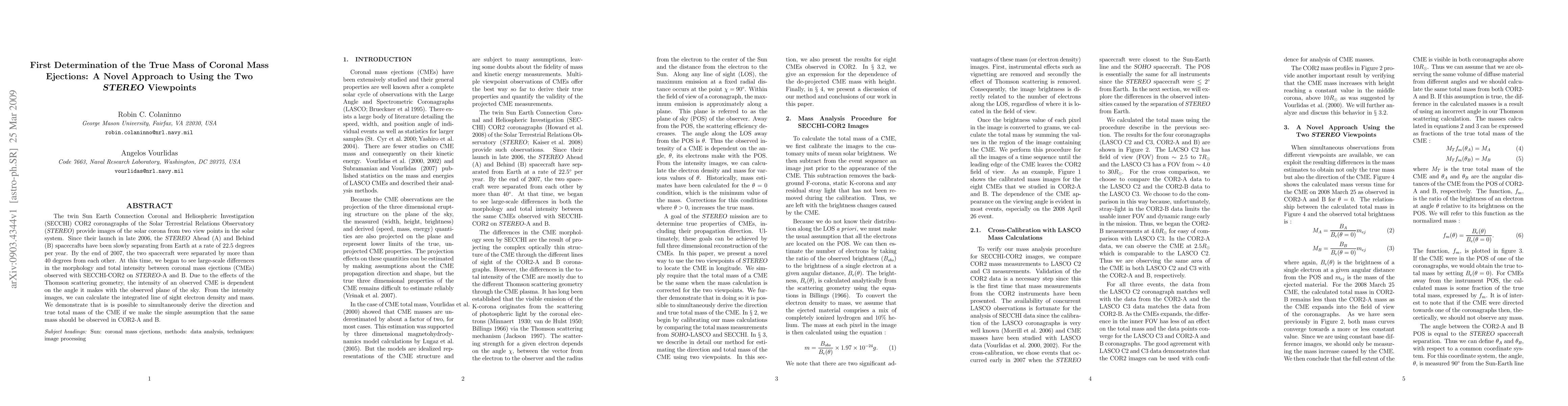 This paper presents a novel method to determine the true mass of coronal mass ejections (CMEs) using the two viewpoints of the STEREO spacecraft's SECCHI-COR2 coronagraphs. By analyzing the differences in observed intensity due to Thomson scattering geometry, the authors derive the direction and true mass of CMEs, assuming consistent mass observations from both viewpoints.