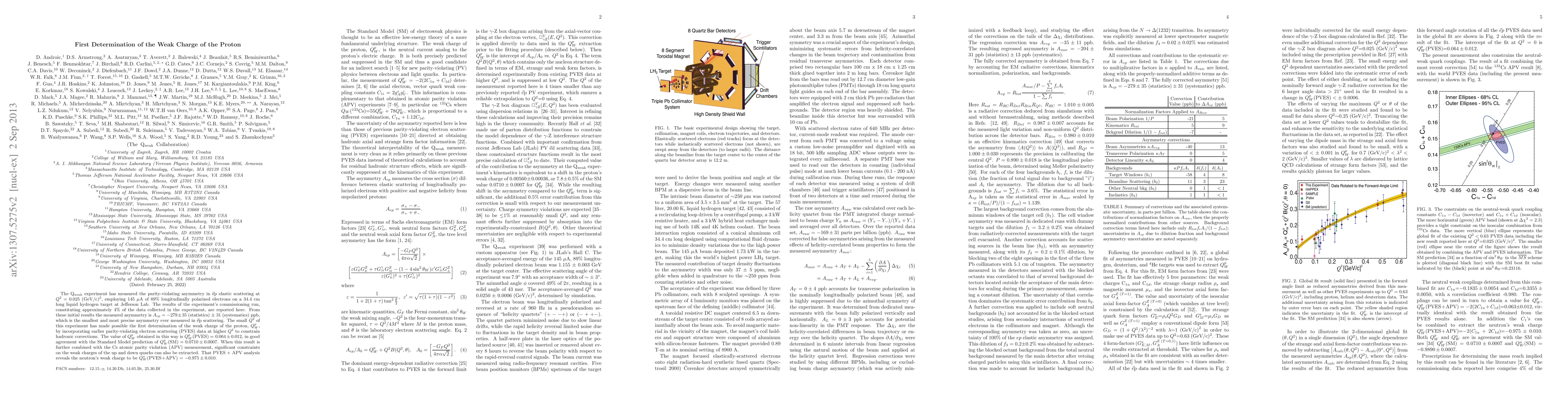 The Qweak experiment has measured the parity-violating asymmetry in polarized e-p elastic scattering at Q^2 = 0.025(GeV/c)^2, employing 145 microamps of 89% longitudinally polarized electrons on a 34.4cm long liquid hydrogen target at Jefferson Lab. The results of the experiment's commissioning run are reported here, constituting approximately 4% of the data collected in the experiment. From these initial results the measured asymmetry is Aep = -279 +- 35 (statistics) +- 31 (systematics) ppb, which is the smallest and most precise asymmetry ever measured in polarized e-p scattering. The small Q^2 of this experiment has made possible the first determination of the weak charge of the proton, QpW, by incorporating earlier parity-violating electron scattering (PVES) data at higher Q^2 to constrain hadronic corrections. The value of QpW obtained in this way is QpW(PVES) = 0.064 +- 0.012, in good agreement with the Standard Model prediction of QpW(SM) = 0.0710 +- 0.0007. When this result is further combined with the Cs atomic parity violation (APV) measurement, significant constraints on the weak charges of the up and down quarks can also be extracted. That PVES+APV analysis reveals the neutron's weak charge to be QnW(PVES+APV) = -0.975 +- 0.010.