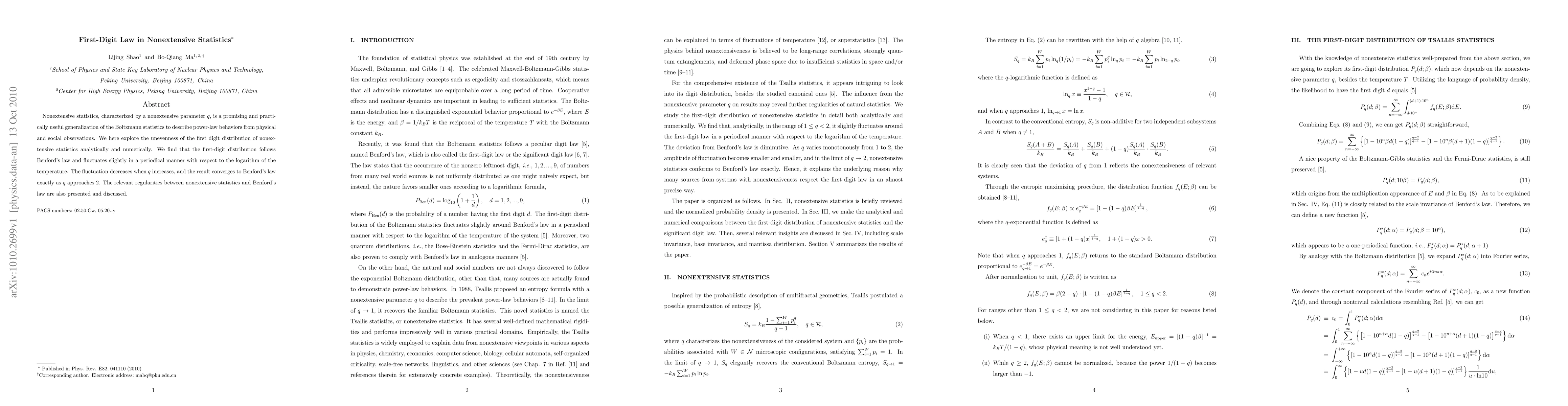 This paper investigates the first-digit distribution in nonextensive statistics, finding it follows Benford's law, with fluctuations diminishing as the nonextensive parameter $q$ increases, converging to Benford's law as $q$ approaches 2. The study highlights the connection between nonextensive statistics and Benford's law.