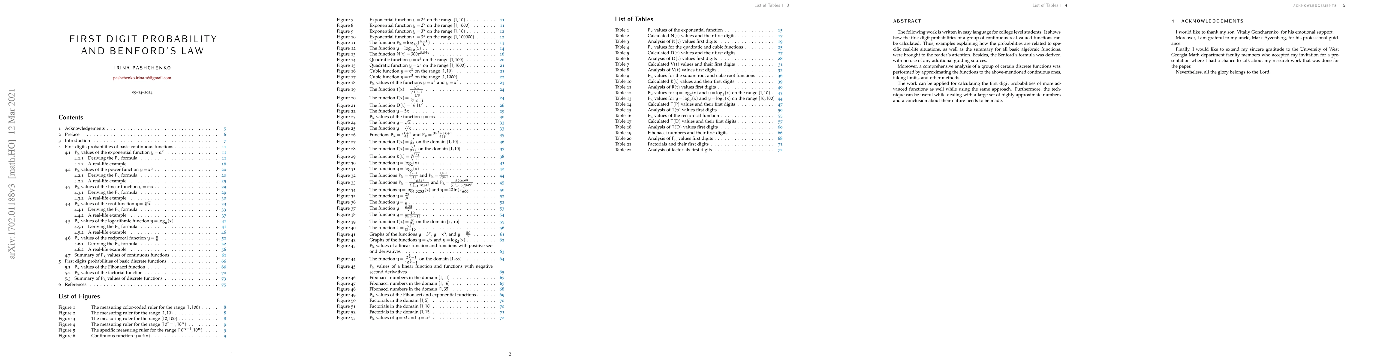 This research paper explores the calculation of first digit probabilities for various real-valued functions using Benford's Law, with implications for analyzing large sets of approximate numbers.
