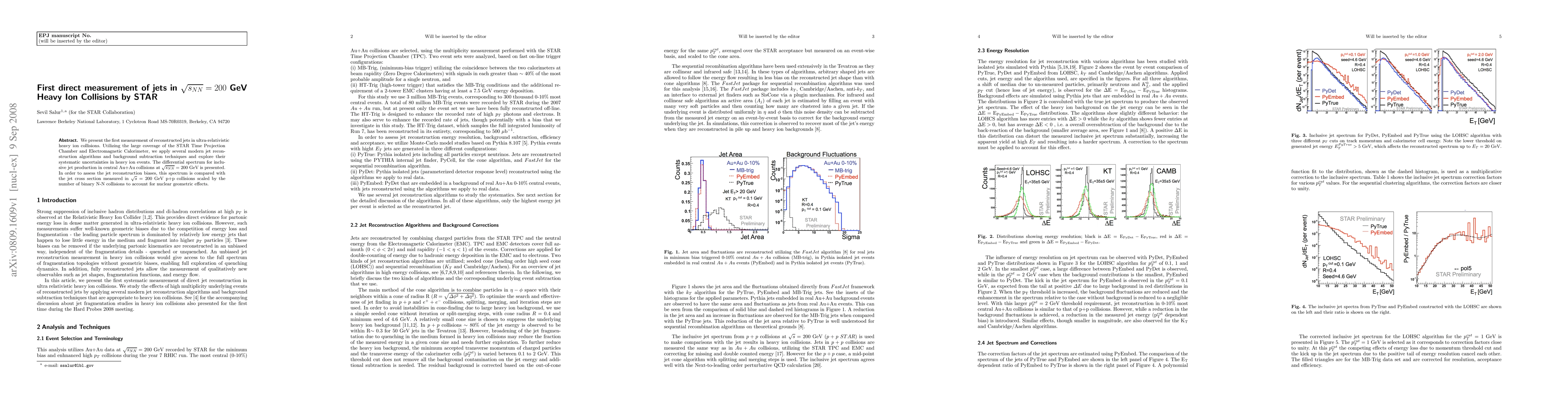 This paper reports the first direct measurement of reconstructed jets in heavy ion collisions at $\sqrt{s_{NN}}=200$ GeV using the STAR detector, applying advanced jet reconstruction techniques and comparing results with scaled proton-proton collision data to assess reconstruction biases. The study provides insights into jet production in the context of nuclear geometry.