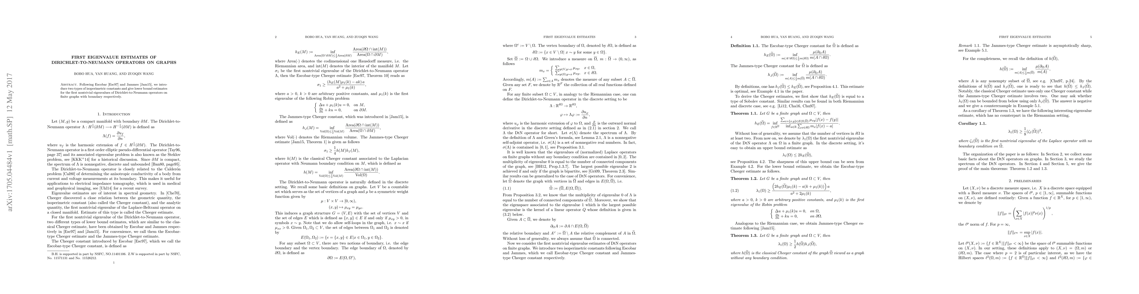 This paper explores lower bound estimates for the first nontrivial eigenvalues of Dirichlet-to-Neumann operators on finite graphs, introducing two types of isoperimetric constants inspired by Escobar and Jammes. The results provide insights into the spectral properties of these operators.