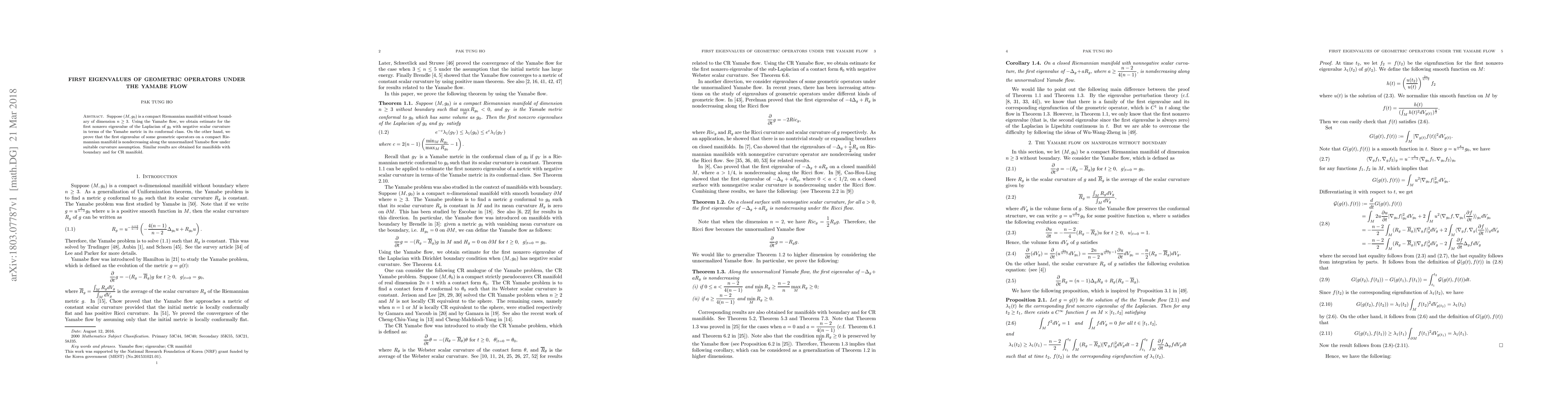 This paper investigates the first nonzero eigenvalue of the Laplacian on compact Riemannian manifolds under the Yamabe flow, providing estimates in terms of the Yamabe metric and proving that the first eigenvalue of certain geometric operators is nondecreasing along the unnormalized Yamabe flow under specific curvature conditions. Results are also extended to manifolds with boundary and CR manifolds.
