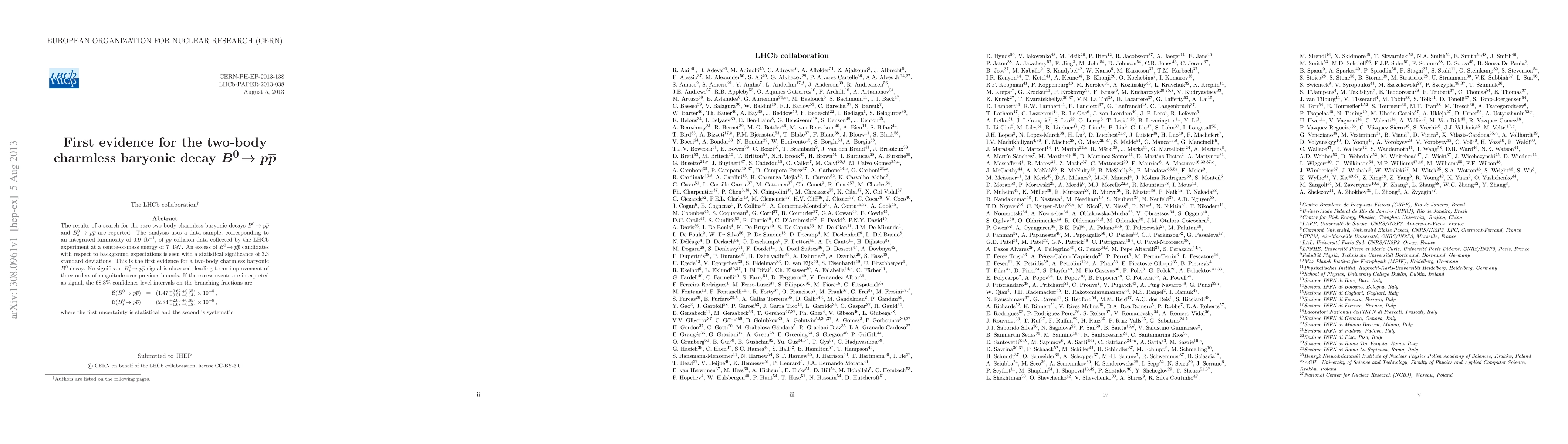 This study reports the first evidence of the rare decay $B^0 \to p \bar{p}$ with a statistical significance of 3.3 standard deviations, using LHCb data at 7 TeV. No significant $B_s^0 \to p \bar{p}$ signal is found, improving previous bounds by three orders of magnitude.