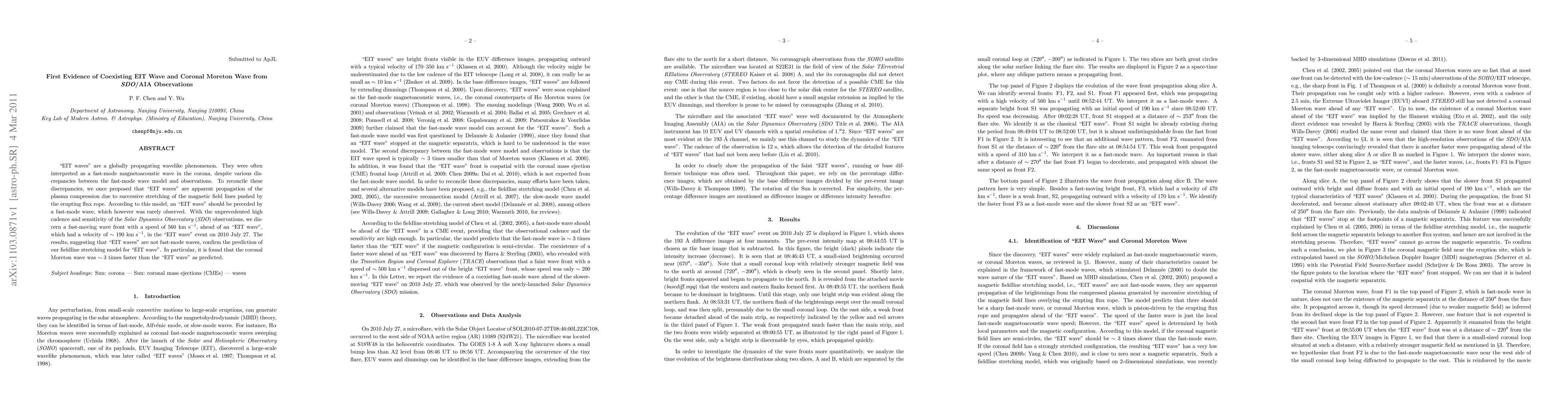 This paper presents the first observation of both an EIT wave and a coronal Moreton wave coexisting during a solar event, using SDO/AIA data. The study reveals a fast-moving coronal Moreton wave preceding the slower EIT wave, supporting the model that EIT waves are due to magnetic field stretching rather than fast-mode magnetoacoustic waves.