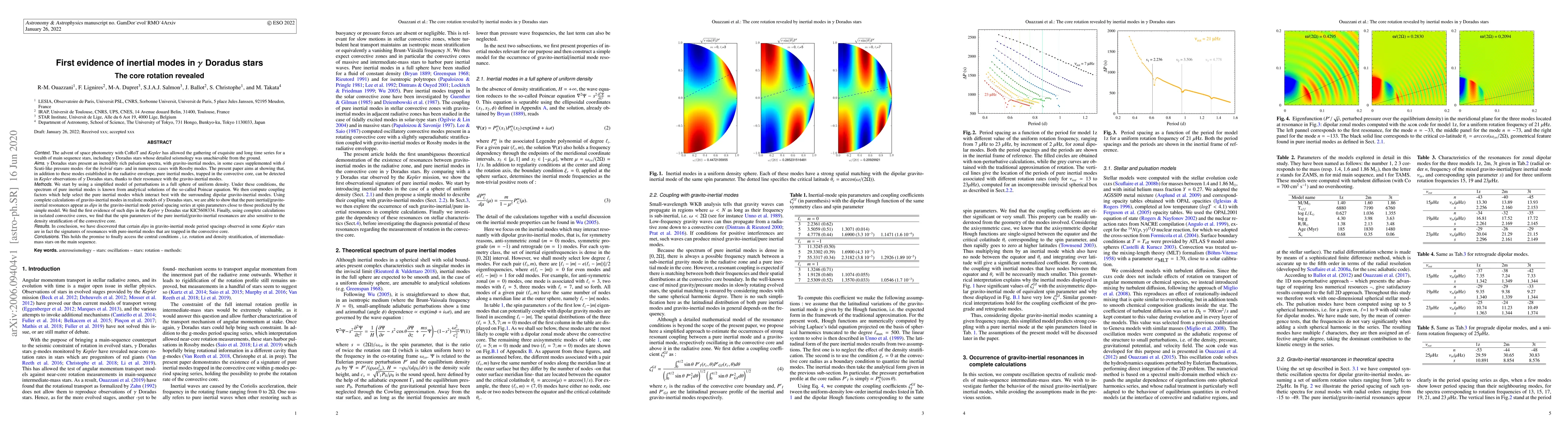 This paper provides the first evidence of inertial modes in γ Doradus stars, revealing core rotation through resonance with gravito-inertial modes observed in Kepler data. The study identifies dips in period spacing series as signatures of these resonances, offering insights into the core's rotation and density stratification of intermediate-mass stars.