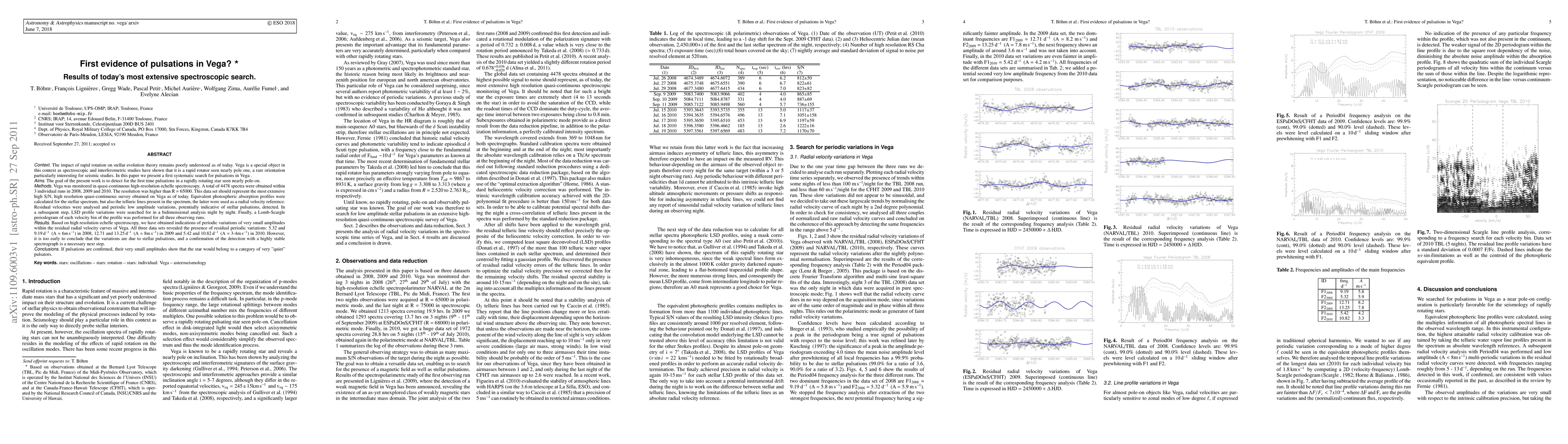 The impact of rapid rotation on stellar evolution theory remains poorly understood as of today. Vega is a special object in this context as spectroscopic and interferometric studies have shown that it is a rapid rotator seen nearly pole one, a rare orientation particularly interesting for seismic studies. In this paper we present a first systematic search for pulsations in Vega. The goal of the present work is to detect for the first time pulsations in a rapidly rotating star seen nearly pole-on. Vega was monitored in quasi-continuous high-resolution echelle spectroscopy. A total of 4478 spectra were obtained within 3 individual runs in 2008, 2009 and 2010 at high resolution. This data set should represent the most extensive high S/N, high resolution quasi-continuous survey obtained on Vega as of today. Equivalent photospheric absorption profiles were calculated for the stellar spectrum, but also for the telluric lines acting as a radial velocity reference. Residual velocities were analysed and periodic low amplitude variations, potentially indicative of stellar pulsations, detected. All three data sets revealed the presence of residual periodic variations: 5.32 and 9.19 c/d, (A approx 6 m/s) in 2008, 12.71 and 13.25 c/d, (A approx 8 m/s) in 2009 and 5.42 and 10.82 c/d, (A approx 3-4 m/s) in 2010. A Lomb-Scargle periodogram of each velocity bin of the equivalent profile was performed for the 2010 run, not showing the presence of any higher order nrp mode. It is too early to conclude that the variations are due to stellar pulsations, and a confirmation of the detection with a highly stable spectrograph is a necessary next step. If pulsations are confirmed, their very small amplitudes show that the star would belong to a category of very "quiet" pulsators.