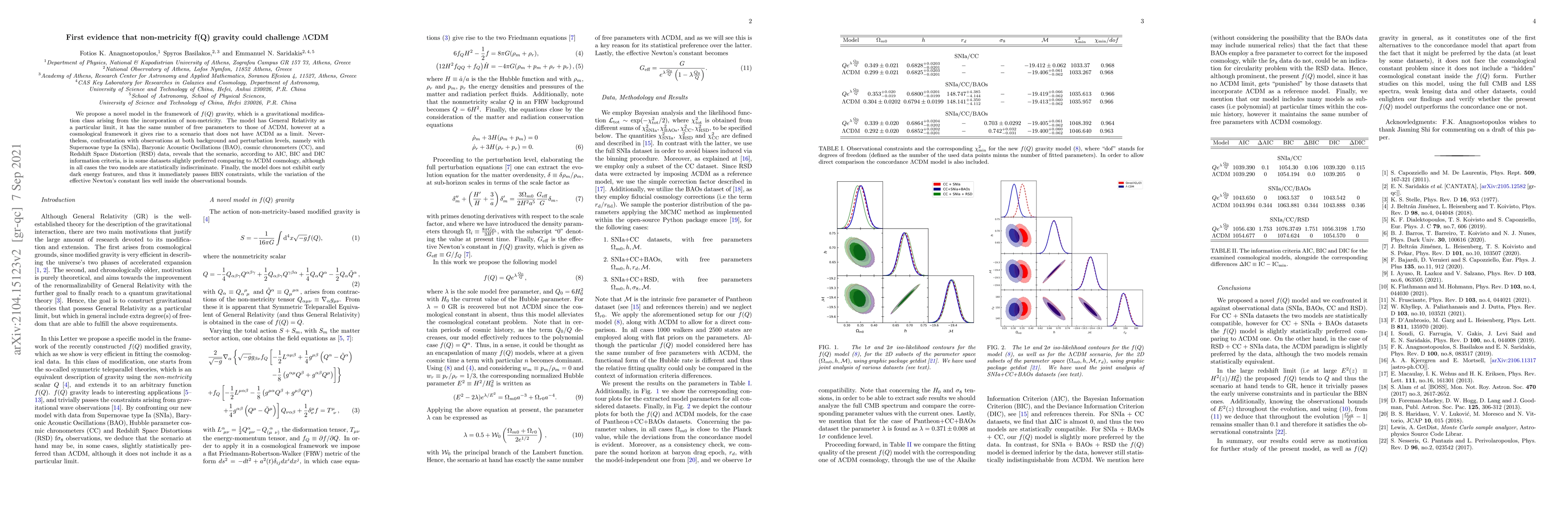 This paper proposes an $f(Q)$ gravity model incorporating non-metricity, which slightly outperforms $\Lambda$CDM in some observational datasets according to AIC, BIC, and DIC, but remains statistically indistinguishable. The model avoids early dark energy and complies with observational constraints.