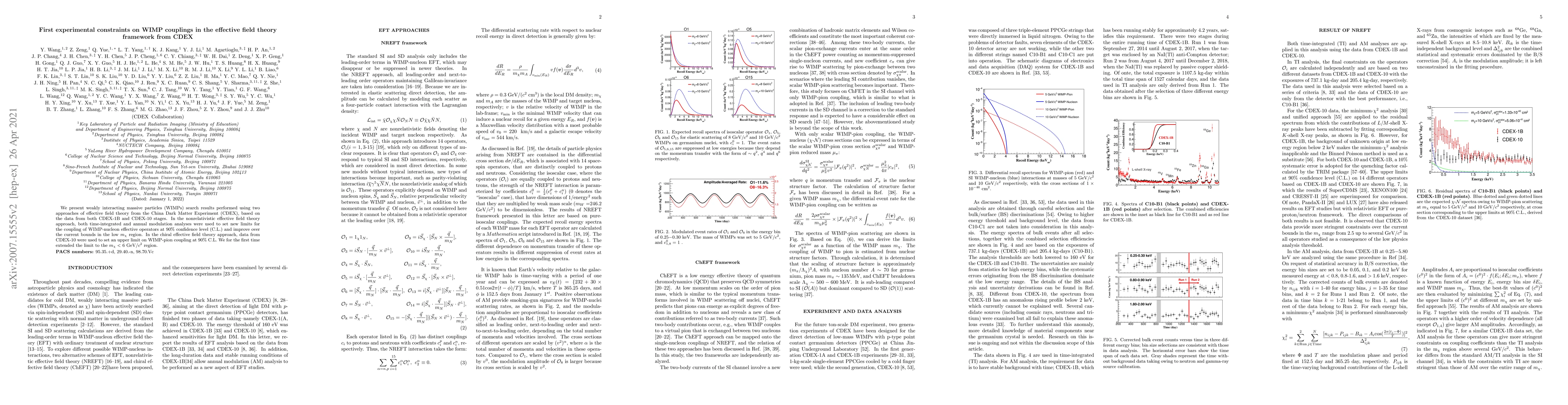 The China Dark Matter Experiment (CDEX) has set new experimental constraints on weakly interacting massive particles (WIMP) couplings using effective field theory approaches, improving limits in the low WIMP mass region and extending the upper limit on WIMP-pion coupling to masses below 6 GeV/$c^2$.
