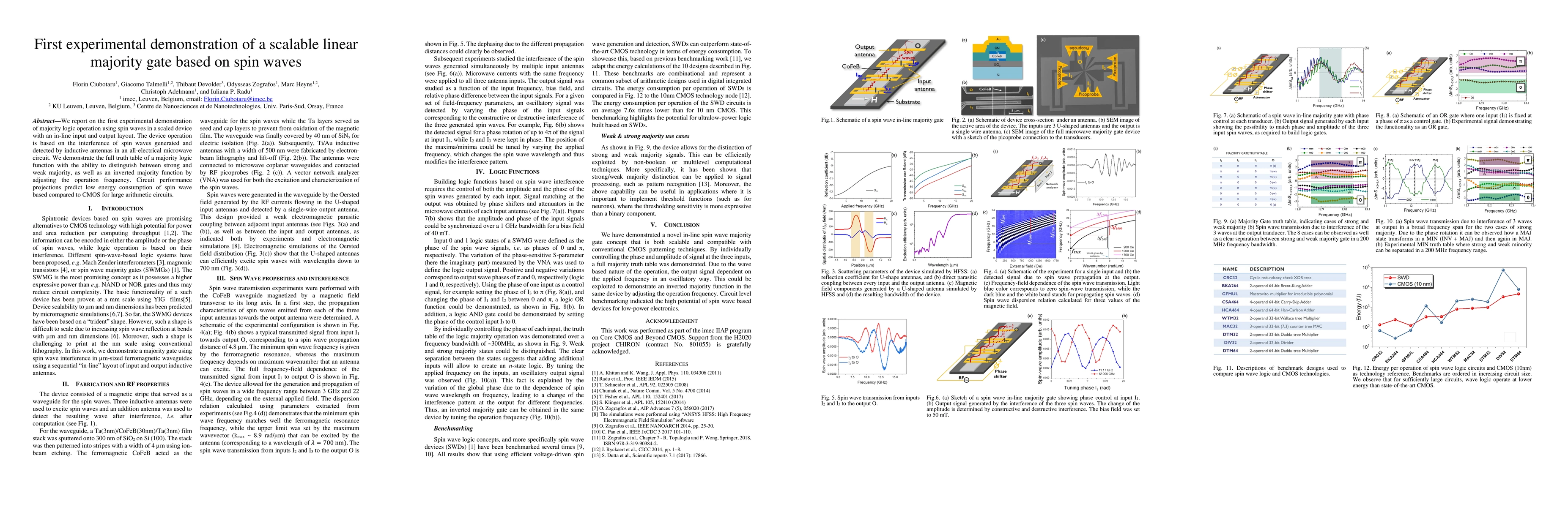 Researchers demonstrated a scalable linear majority gate using spin waves in an all-electrical microwave circuit, achieving low energy consumption compared to traditional CMOS technology.