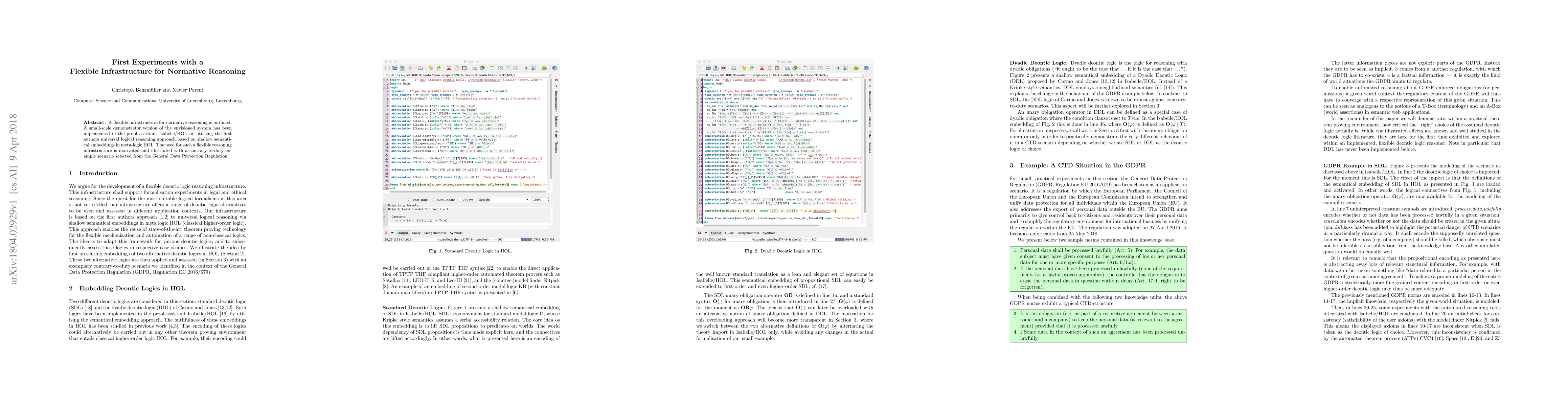 Summary: The paper introduces a flexible normative reasoning infrastructure implemented in Isabelle/HOL, demonstrating its potential with a proof assistant approach. It showcases the necessity of this infrastructure through a GDPR contrary-to-duty scenario.