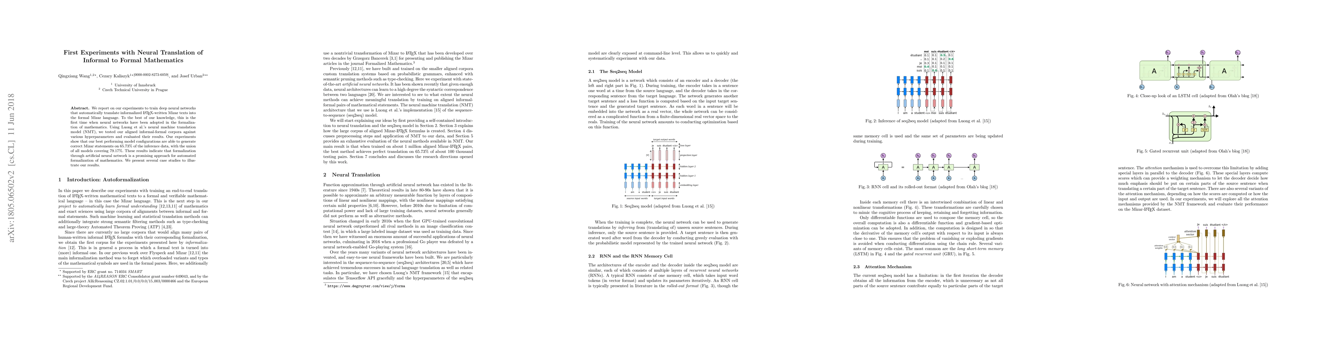 This paper reports on pioneering experiments using deep neural networks to translate informal LaTeX-written Mizar texts into formal Mizar language, achieving 65.73% accuracy with the best model configurations. The results suggest that neural networks hold promise for automating mathematical formalization.
