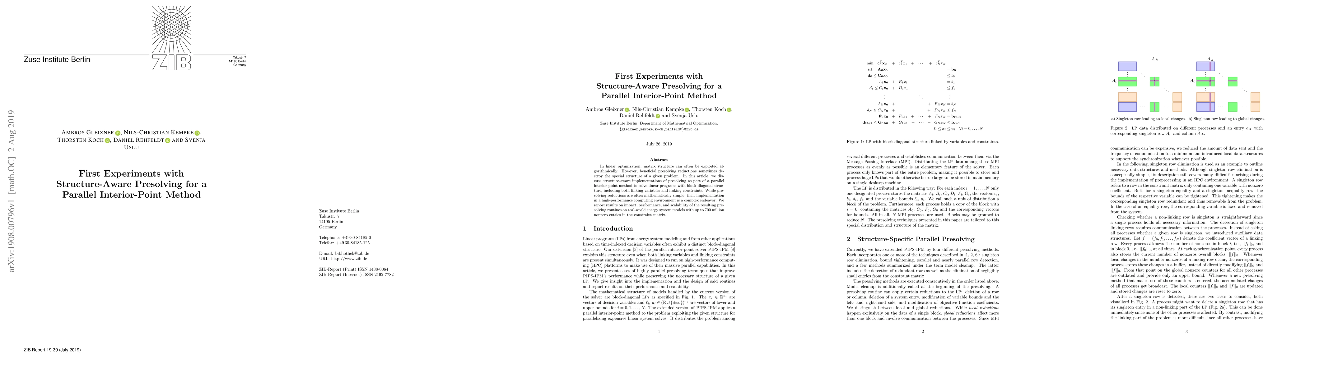 This paper explores structure-aware presolving techniques integrated into a parallel interior-point method for solving linear programs with block-diagonal structures, aiming to preserve problem-specific matrix structures. The study evaluates the impact, performance, and scalability of these techniques on large-scale energy system models.