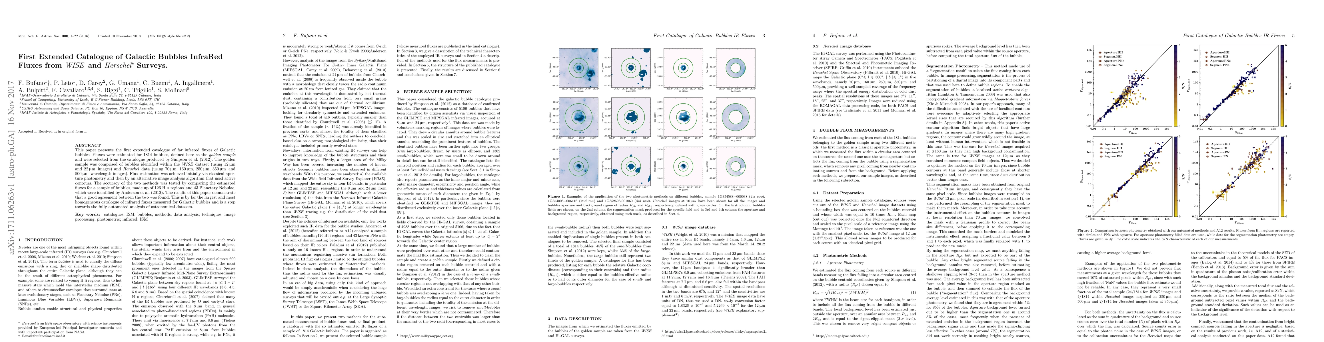 This paper presents the first extensive catalogue of far-infrared fluxes for 1814 Galactic bubbles, using data from WISE and Herschel surveys. The fluxes were estimated using both aperture photometry and an active contour algorithm, showing good agreement.