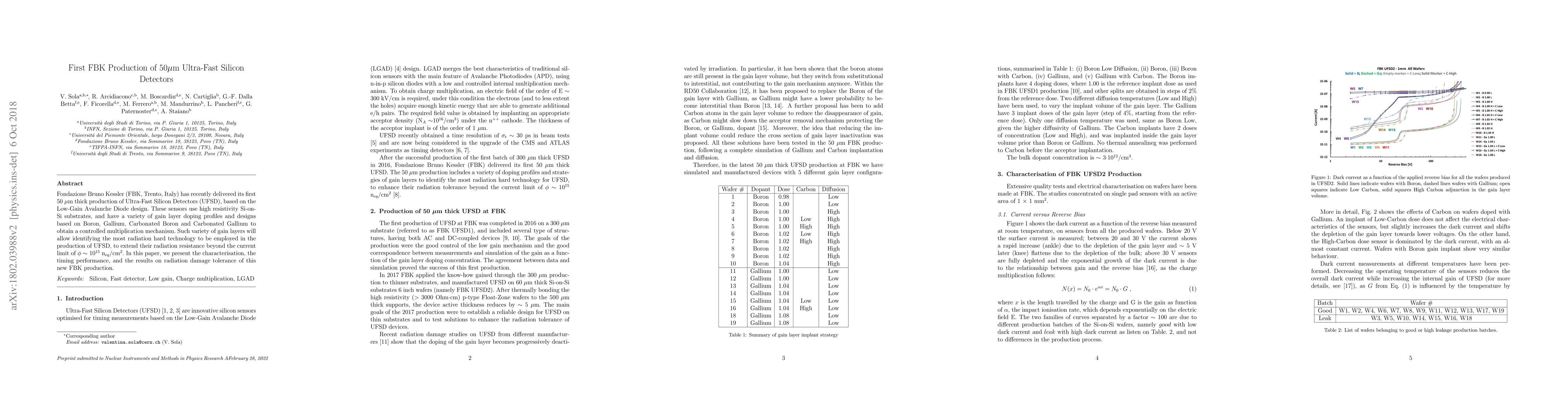 Fondazione Bruno Kessler (FBK, Trento, Italy) has recently delivered its first 50 $\mu$m thick production of Ultra-Fast Silicon Detectors (UFSD), based on the Low-Gain Avalanche Diode design. These sensors use high resistivity Si-on-Si substrates, and have a variety of gain layer doping profiles and designs based on Boron, Gallium, Carbonated Boron and Carbonated Gallium to obtain a controlled multiplication mechanism. Such variety of gain layers will allow identifying the most radiation hard technology to be employed in the production of UFSD, to extend their radiation resistance beyond the current limit of $\phi \sim$ 10$^{15}$ n$_{eq}$/cm$^2$. In this paper, we present the characterisation, the timing performances, and the results on radiation damage tolerance of this new FBK production.