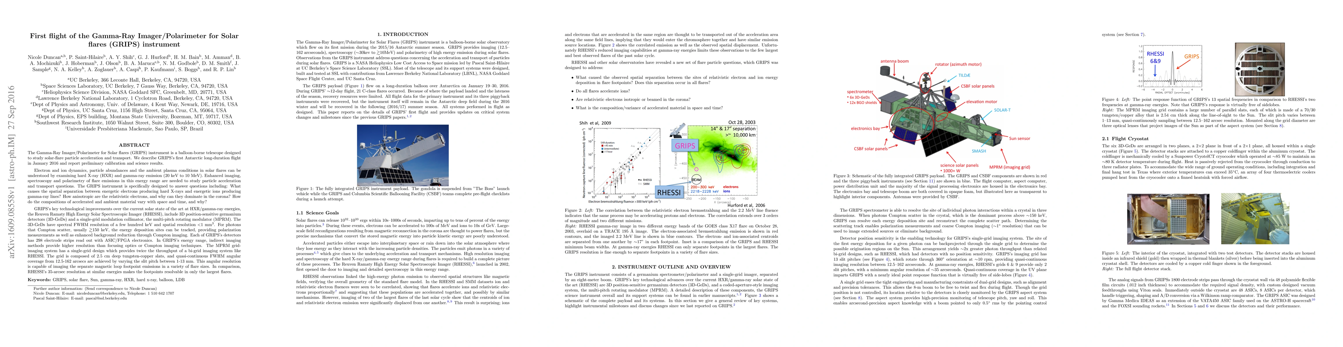The Gamma-Ray Imager/Polarimeter for Solar flares (GRIPS) instrument successfully completed its first Antarctic flight in 2016, providing preliminary results on solar-flare particle acceleration and transport. The experiment's innovative technology allowed for enhanced imaging, spectroscopy, and polarimetry of hard X-ray and gamma-ray emission, offering new insights into the dynamics of solar flares.