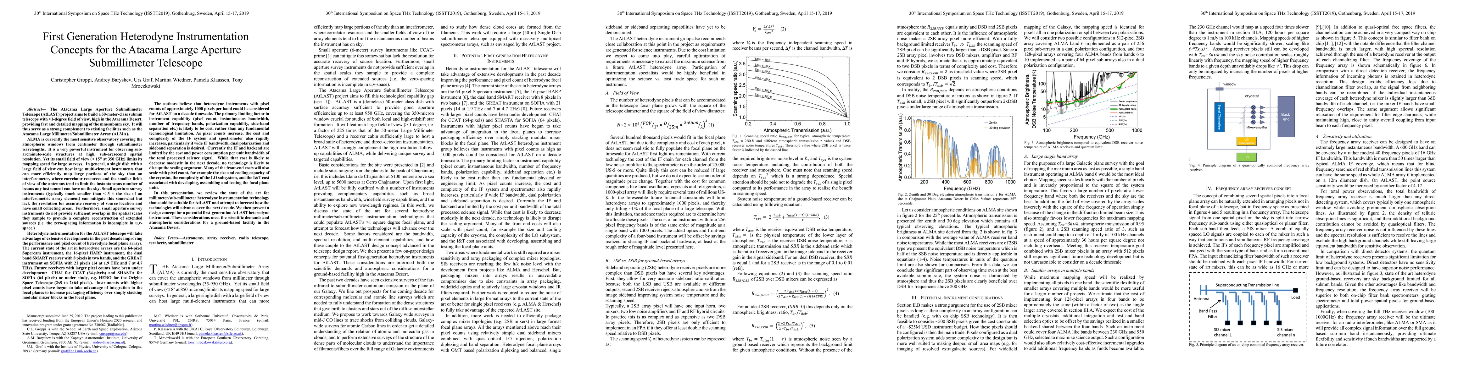 The AtLAST project aims to construct a large submillimeter telescope with a broad field of view to efficiently map the mm/submm sky. First-generation heterodyne instrumentation concepts for AtLAST leverage recent advancements in heterodyne focal plane arrays to enhance performance and packaging efficiency.