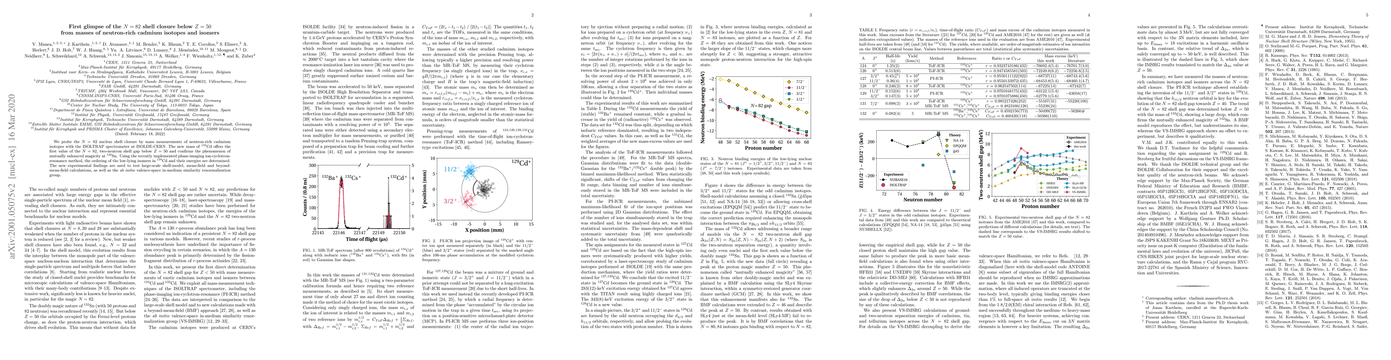 We probe the $N=82$ nuclear shell closure by mass measurements of neutron-rich cadmium isotopes with the ISOLTRAP spectrometer at ISOLDE-CERN. The new mass of $^{132}$Cd offers the first value of the $N=82$, two-neutron shell gap below $Z=50$ and confirms the phenomenon of mutually enhanced magicity at $^{132}$Sn. Using the recently implemented phase-imaging ion-cyclotron-resonance method, the ordering of the low-lying isomers in $^{129}$Cd and their energies are determined. The new experimental findings are used to test large-scale shell-model, mean-field and beyond-mean-field calculations, as well as the ab initio valence-space in-medium similarity renormalization group.