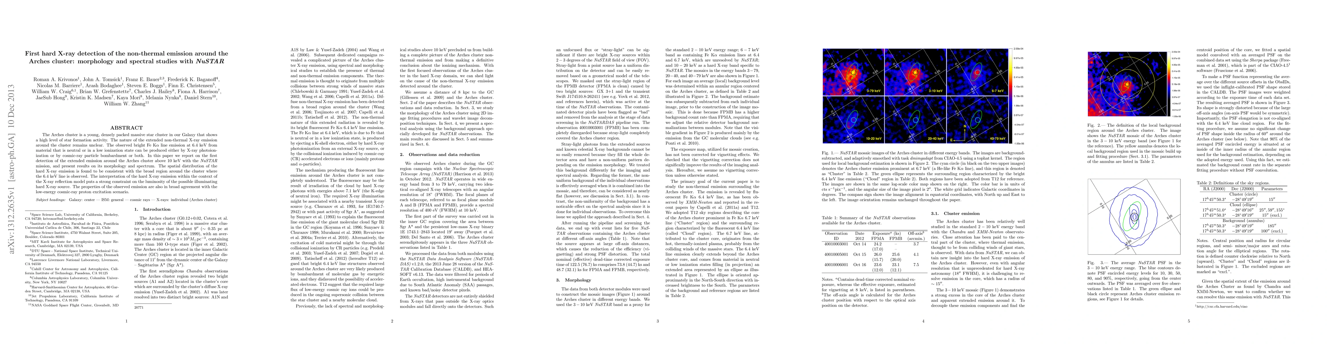 This paper reports the first detection of extended hard X-ray emission around the Arches cluster using NuSTAR, revealing its morphology and spectrum. The findings support the low-energy cosmic-ray proton excitation model and constrain the luminosity of potential X-ray sources.