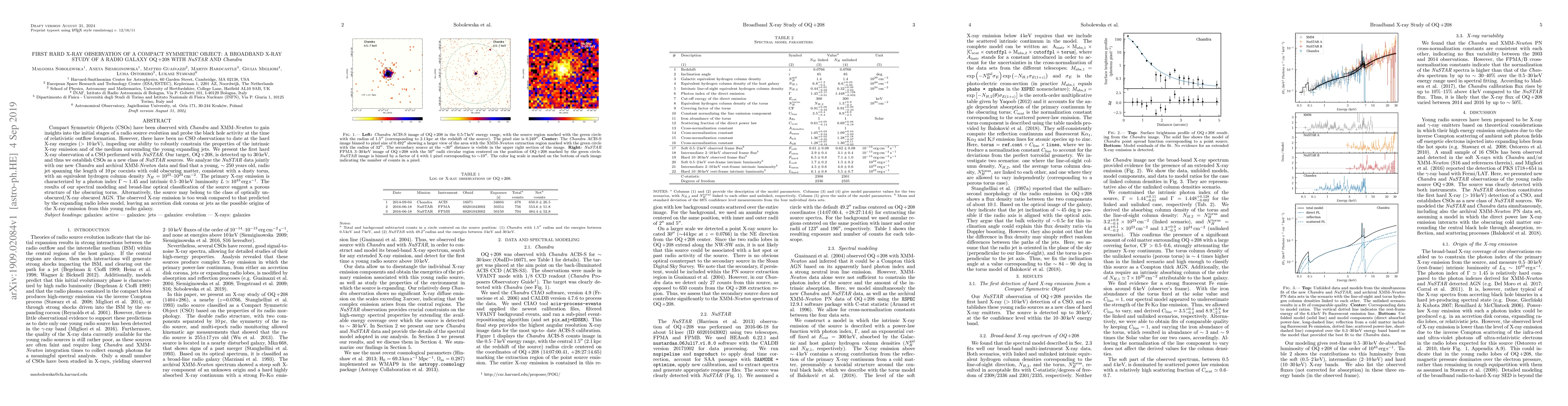 This paper presents the first hard X-ray observation of a Compact Symmetric Object (CSO) using NuSTAR, detecting OQ+208 up to 30 keV. The study reveals a young, ~250-year-old radio jet coexisting with a dusty torus, suggesting a porous obscuring structure or an optically un-obscured/X-ray obscured AGN, with the X-ray emission likely originating from an accretion disk corona or jets.