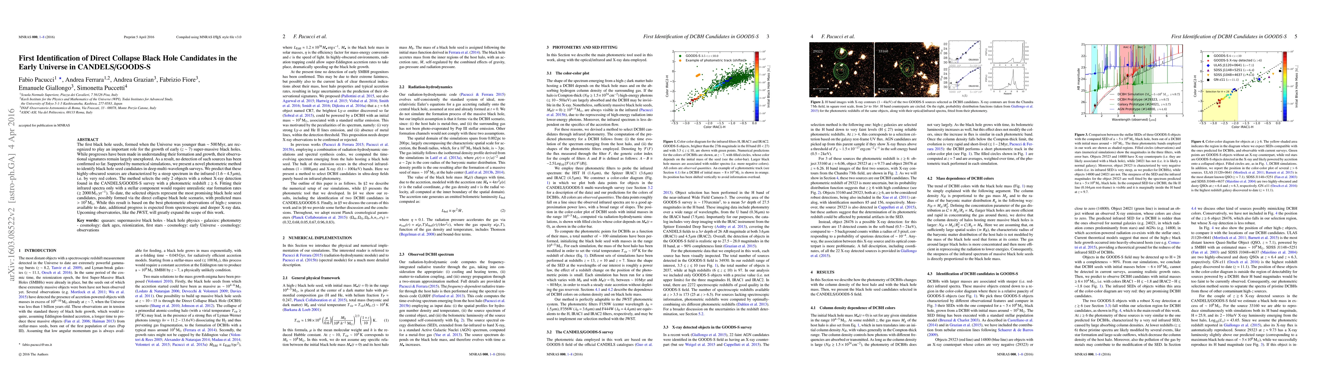 This paper identifies the first candidates for direct collapse black holes in the early Universe using a novel photometric method in the CANDELS/GOODS-S survey. The selected objects exhibit steep infrared spectra and high X-ray detection, suggesting they are highly-obscured black hole seeds with masses greater than 10^5 solar masses, challenging conventional star formation models.
