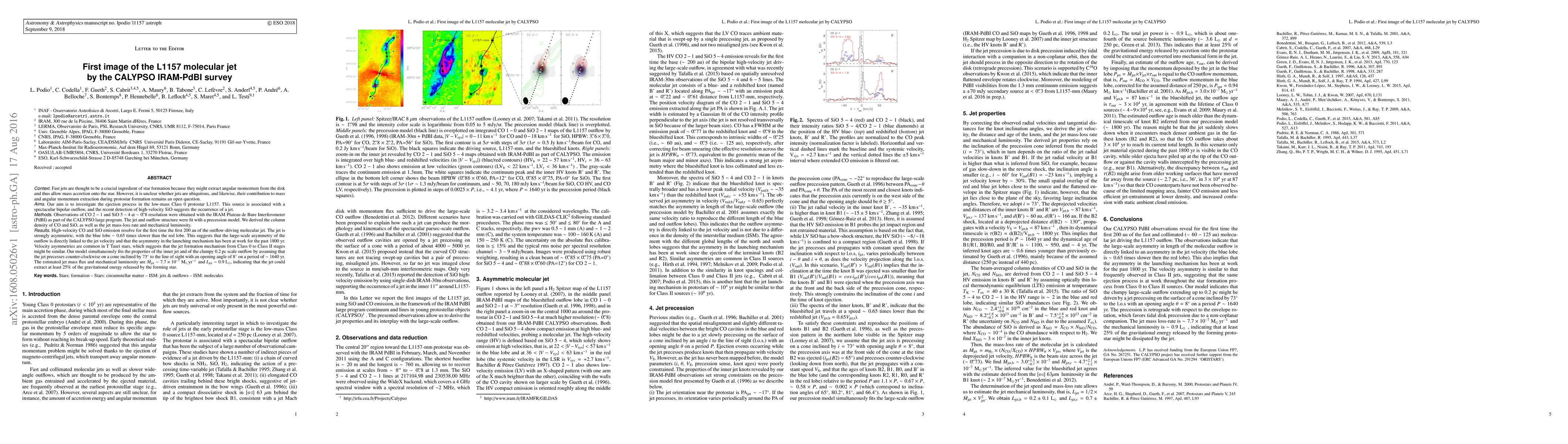 Fast jets are thought to be a crucial ingredient of star formation because they might extract angular momentum from the disk and thus allow mass accretion onto the star. However, it is unclear whether jets are ubiquitous, and likewise, their contribution to mass and angular momentum extraction during protostar formation remains an open question. Our aim is to investigate the ejection process in the low-mass Class 0 protostar L1157. This source is associated with a spectacular bipolar outflow, and the recent detection of high-velocity SiO suggests the occurrence of a jet. Observations of CO 2-1 and SiO 5-4 at 0.8" resolution were obtained with the IRAM Plateau de Bure Interferometer as part of the CALYPSO large program. The jet and outflow structure were fit with a precession model. We derived the column density of CO and SiO, as well as the jet mass-loss rate and mechanical luminosity. High-velocity CO and SiO emission resolve for the first time the first 200 au of the outflow-driving molecular jet. The jet is strongly asymmetric, with the blue lobe 0.65 times slower than the red lobe. This suggests that the large-scale asymmetry of the outflow is directly linked to the jet velocity and that the asymmetry in the launching mechanism has been at work for the past 1800 yr. Velocity asymmetries are common in T Tauri stars, which suggests that the jet formation mechanism from Class 0 to Class II stages might be similar. Our model simultaneously fits the inner jet and the clumpy 0.2 pc scale outflow by assuming that the jet precesses counter-clockwise on a cone inclined by 73 degree to the line of sight with an opening angle of 8 degree on a period of 1640 yr. The estimated jet mass flux and mechanical luminosity are 7.7e-7 Msun/yr, and 0.9 Lsun, indicating that the jet could extract at least 25% of the gravitational energy released by the forming star.
