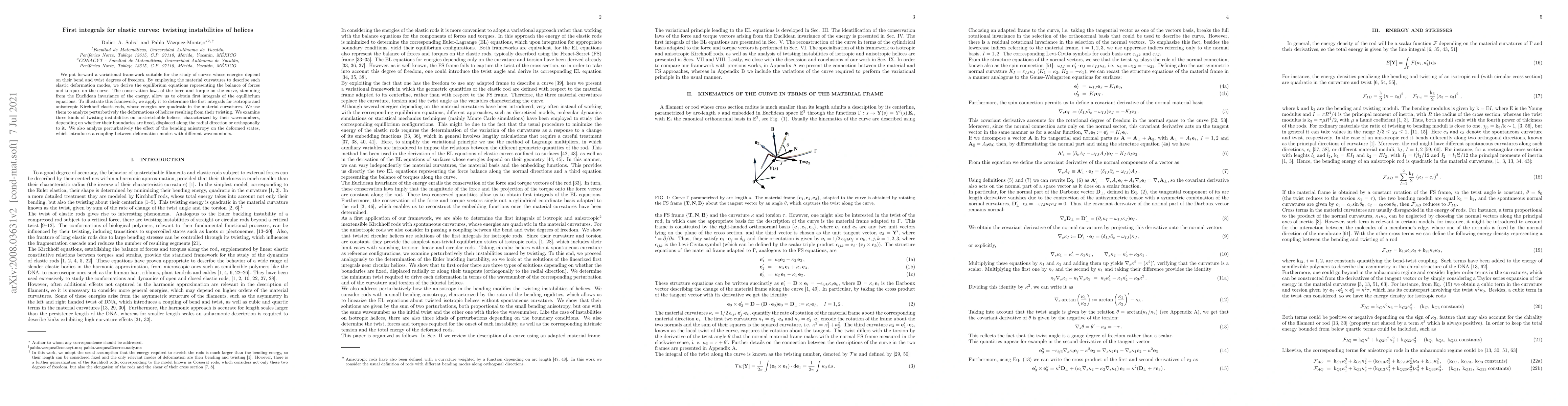 This paper develops a variational framework for analyzing elastic curves' bending and twisting, deriving equilibrium equations and first integrals from material curvatures. It applies this framework to study twisting instabilities in helices, examining three types of twisting instabilities based on boundary conditions and the effect of bending anisotropy.