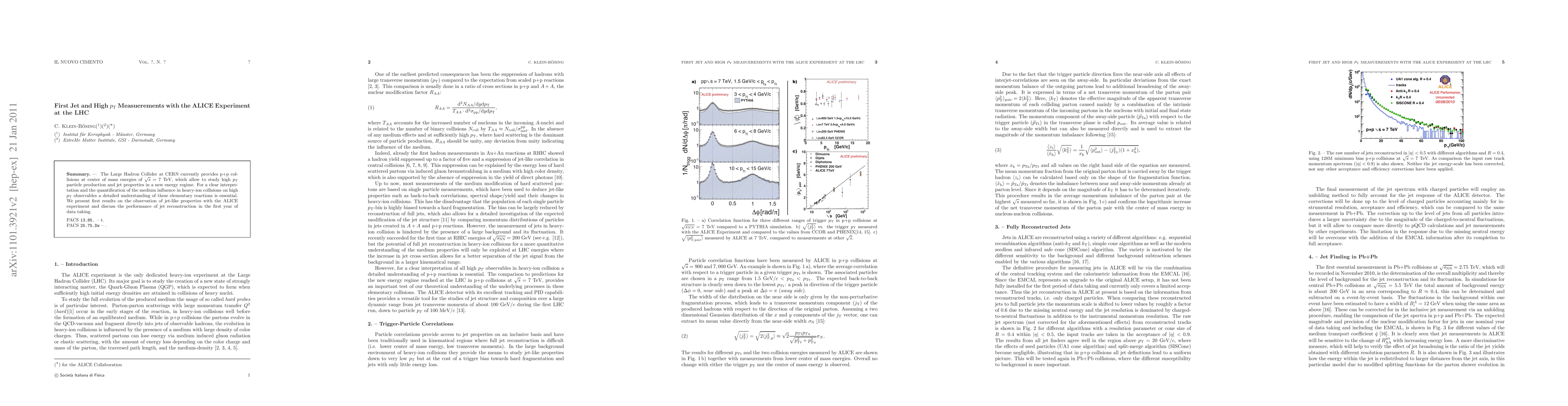 The Large Hadron Collider at CERN currently provides p$+$p collisions at center of mass energies of $\sqrt{s} = 7$~TeV, which allow to study high $\pT$ particle production and jet properties in a new energy regime. For a clear interpretation and the quantification of the medium influence in heavy-ion collisions on high $\pT$ observables a detailed understanding of these elementary reactions is essential. We present first results on the observation of jet-like properties with the ALICE experiment and discuss the performance of jet reconstruction in the first year of data taking.