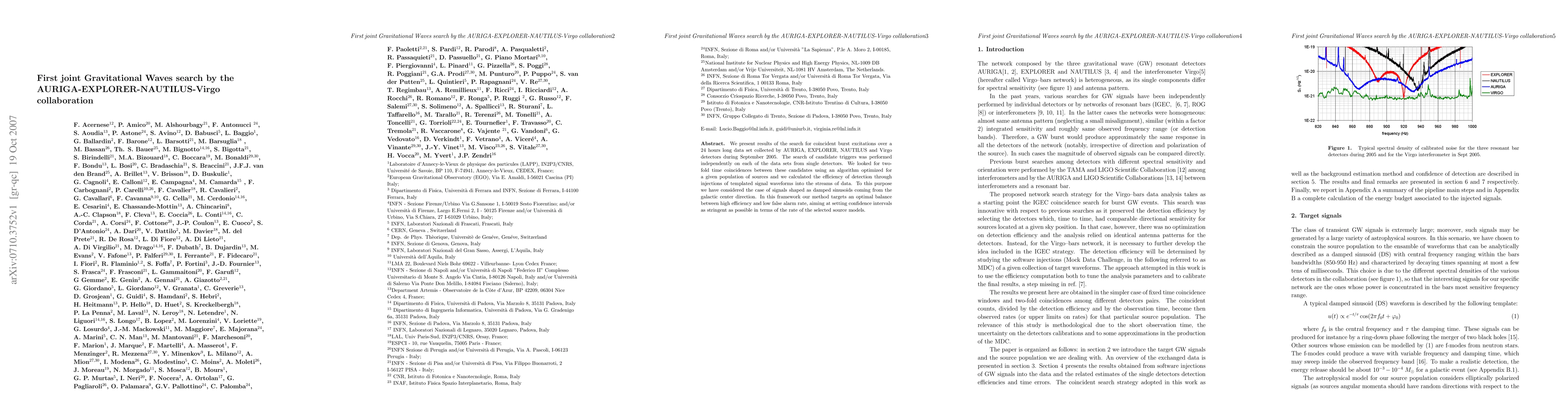 We present results of the search for coincident burst excitations over a 24 hours long data set collected by AURIGA, EXPLORER, NAUTILUS and Virgo detectors during September 2005. The search of candidate triggers was performed independently on each of the data sets from single detectors. We looked for two-fold time coincidences between these candidates using an algorithm optimized for a given population of sources and we calculated the efficiency of detection through injections of templated signal waveforms into the streams of data. To this purpose we have considered the case of signals shaped as damped sinusoids coming from the galactic center direction. In this framework our method targets an optimal balance between high efficiency and low false alarm rate, aiming at setting confidence intervals as stringent as possible in terms of the rate of the selected source models.