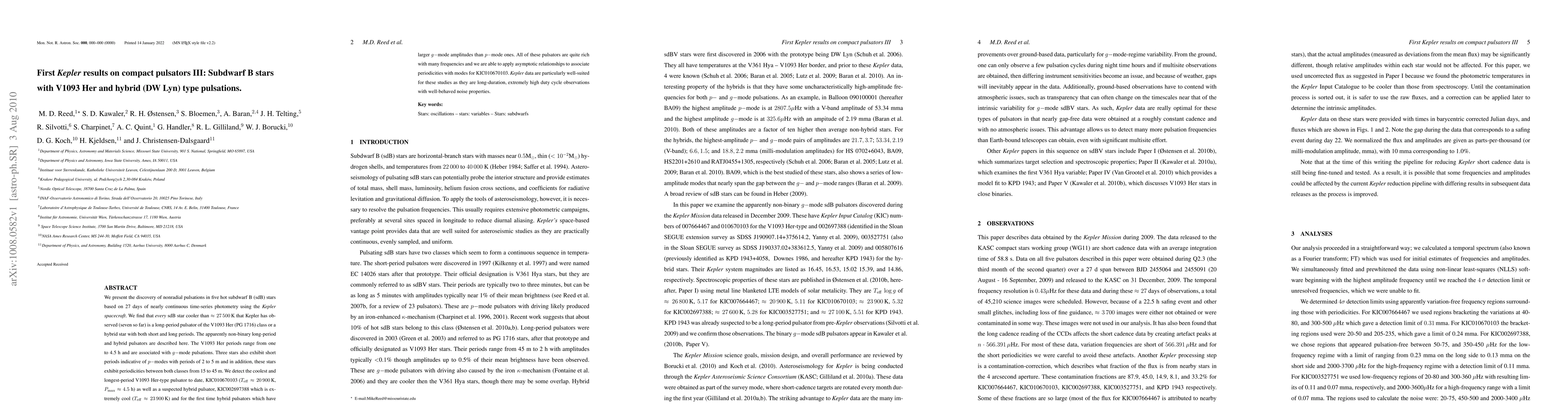 This research discovers nonradial pulsations in five hot subdwarf B stars using Kepler spacecraft data, revealing that cooler sdB stars exhibit V1093 Her or hybrid pulsations. The study identifies the longest-period V1093 Her pulsator and first hybrid pulsators with larger g-mode amplitudes than p-modes.