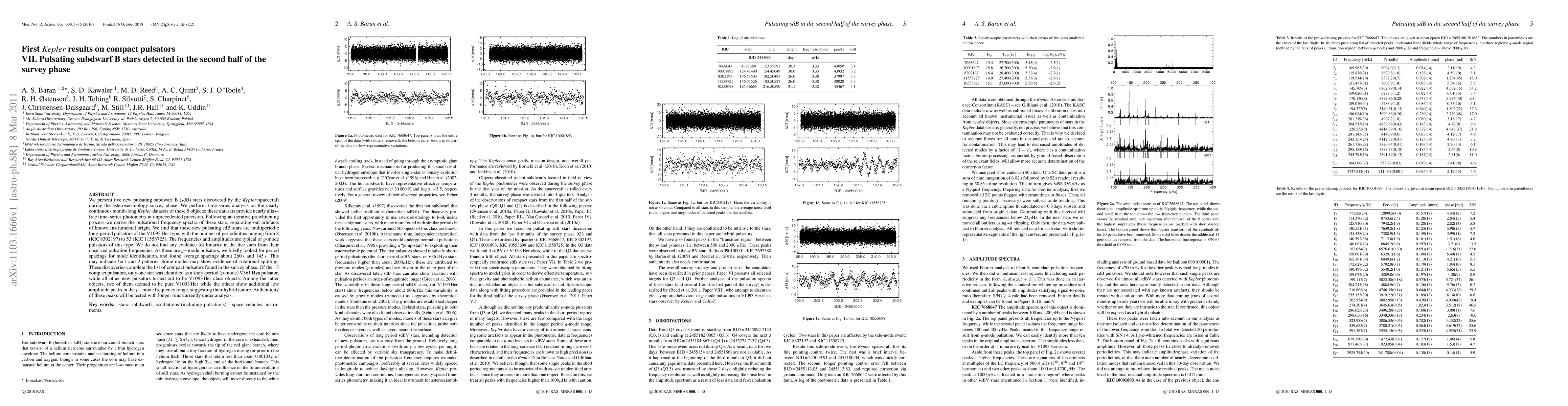 Scientists discovered five pulsating subdwarf B stars using Kepler spacecraft data, finding them to be multiperiodic long-period pulsators of the V1093 Her type with frequencies typical of g-mode pulsators.