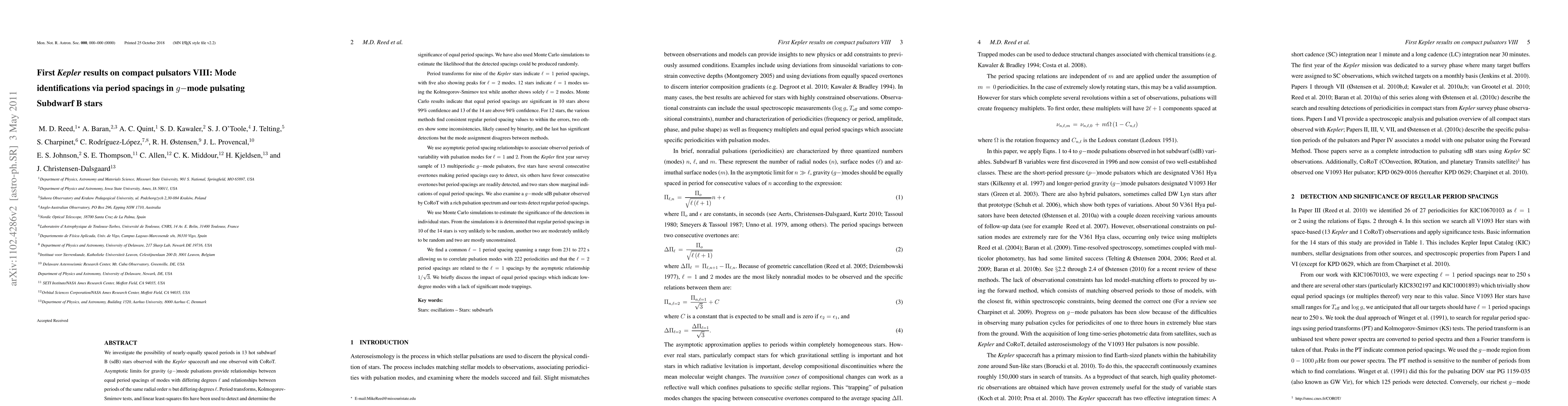 A study using Kepler spacecraft data found that 13 hot subdwarf B stars exhibit nearly equal periods in their g-mode pulsations, indicating a common pattern among these stars. The researchers also discovered a relationship between the period spacings of different modes within the same star.