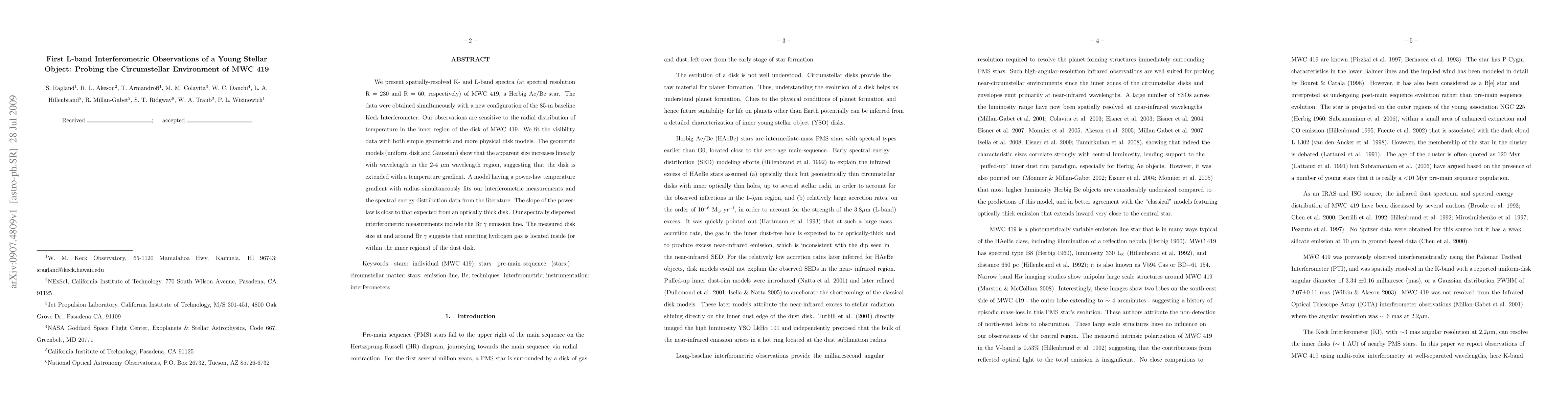 We present spatially-resolved K- and L-band spectra (at spectral resolution R = 230 and R = 60, respectively) of MWC 419, a Herbig Ae/Be star. The data were obtained simultaneously with a new configuration of the 85-m baseline Keck Interferometer. Our observations are sensitive to the radial distribution of temperature in the inner region of the disk of MWC 419. We fit the visibility data with both simple geometric and more physical disk models. The geometric models (uniform disk and Gaussian) show that the apparent size increases linearly with wavelength in the 2-4 microns wavelength region, suggesting that the disk is extended with a temperature gradient. A model having a power-law temperature gradient with radius simultaneously fits our interferometric measurements and the spectral energy distribution data from the literature. The slope of the power-law is close to that expected from an optically thick disk. Our spectrally dispersed interferometric measurements include the Br gamma emission line. The measured disk size at and around Br gamma suggests that emitting hydrogen gas is located inside (or within the inner regions) of the dust disk.