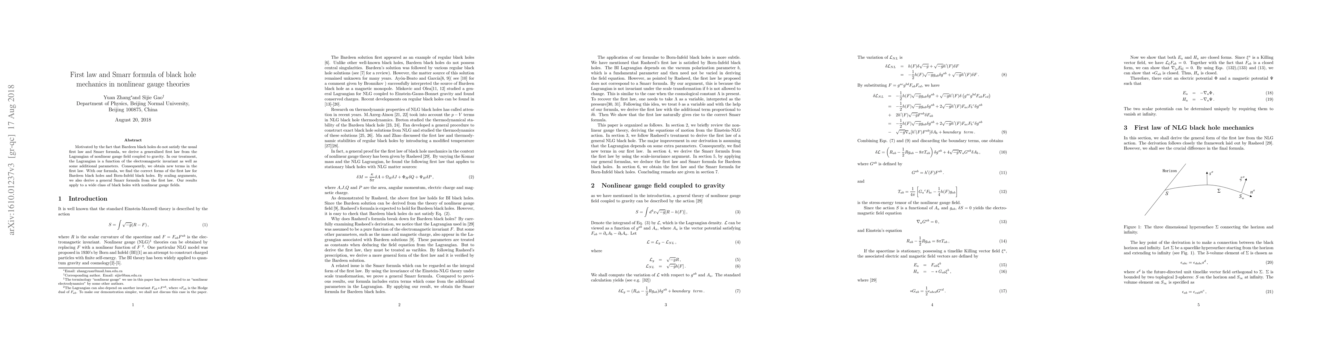 This paper derives a generalized first law and a Smarr formula for black holes in nonlinear gauge theories, addressing the discrepancies found in Bardeen and Born-Infeld black holes. The approach uses a Lagrangian dependent on electromagnetic invariants and additional parameters, leading to new terms in the first law and a general Smarr formula applicable to various nonlinear gauge field black holes.