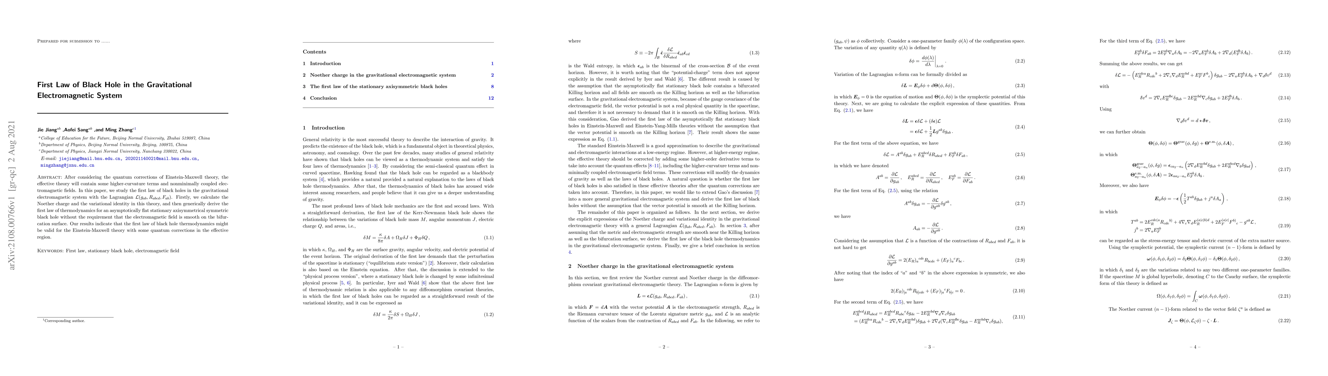 After considering the quantum corrections of Einstein-Maxwell theory, the effective theory will contain some higher-curvature terms and nonminimally coupled electromagnetic fields. In this paper, we study the first law of black holes in the gravitational electromagnetic system with the Lagrangian $\math{L}(g_{ab}, R_{abcd}, F_{ab})$. Firstly, we calculate the Noether charge and the variational identity in this theory, and then generically derive the first law of thermodynamics for an asymptotically flat stationary axisymmetrical symmetric black hole without the requirement that the electromagnetic field is smooth on the bifurcation surface. Our results indicate that the first law of black hole thermodynamics might be valid for the Einstein-Maxwell theory with some quantum corrections in the effective region.