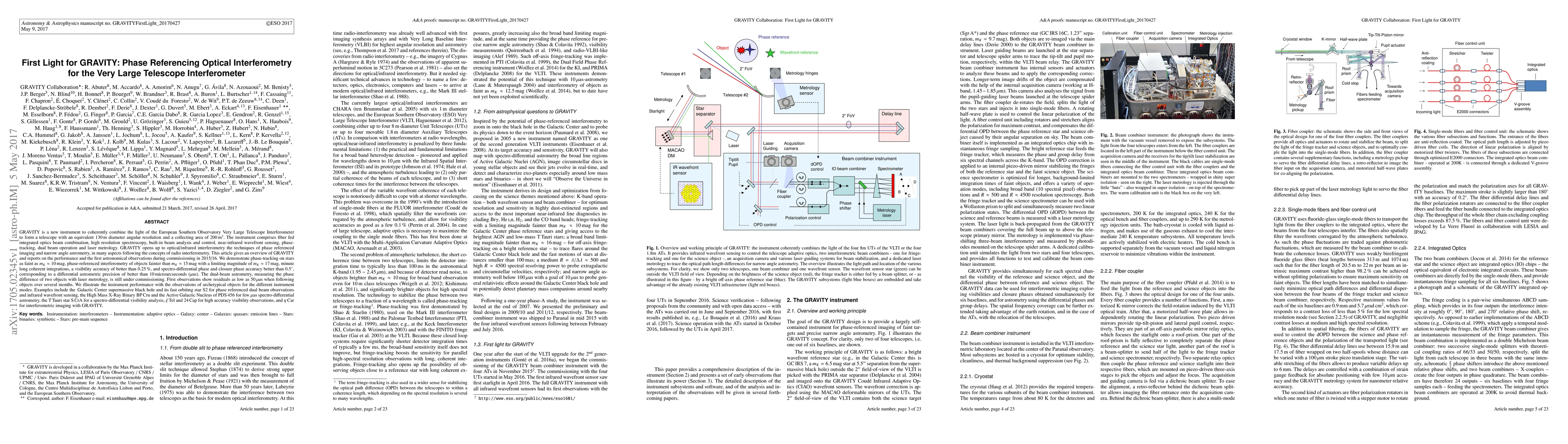 This paper introduces the GRAVITY instrument for the Very Large Telescope Interferometer, showcasing its performance during initial observations in 2015/16. The instrument achieved phase tracking on stars as faint as m$_K$ ~ 10 mag and demonstrated spectro-differential astrometry with precision better than 10 microarcseconds.