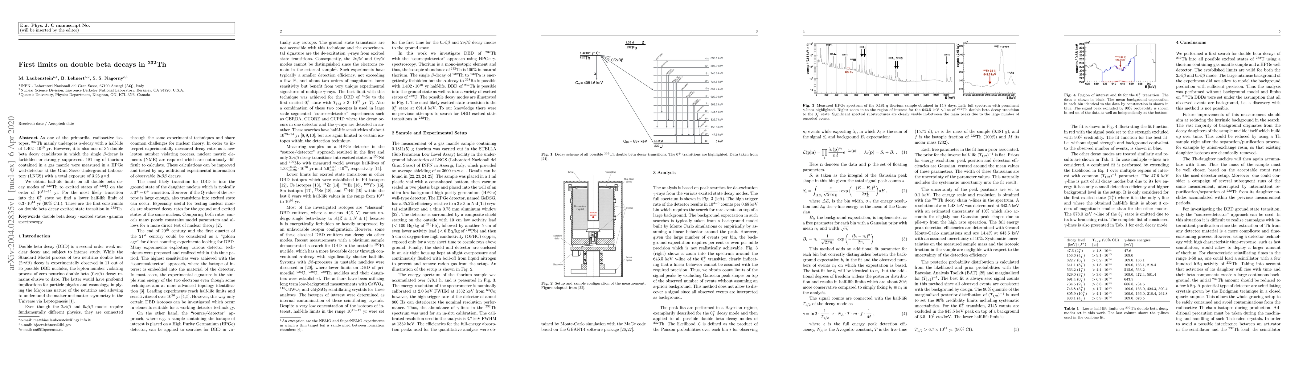 As one of the primordial radioactive isotopes, $^{232}$Th mainly undergoes $\alpha$-decay with a half-life of $1.402 \times 10^{10}$ yr. However, it is also one of 35 double beta decay candidates in which the single $\beta$-decay is forbidden or strongly suppressed. 181 mg of thorium contained in a gas mantle was measured in an HPGe well-detector at the Gran Sasso Underground Laboratory (LNGS) with a total exposure of 3.25 g $\times$ d. We obtain half-life limits on all double beta decay modes of $^{232}$Th to excited states of $^{232}$U on the order of $10^{11-15}$ yr. For the most likely transition into the $0_1^+$ state we find a lower half-life limit of $6.3 \times 10^{14}$ yr (90% credibility). These are the first constraints on double beta decay excited state transition in $^{232}$Th.