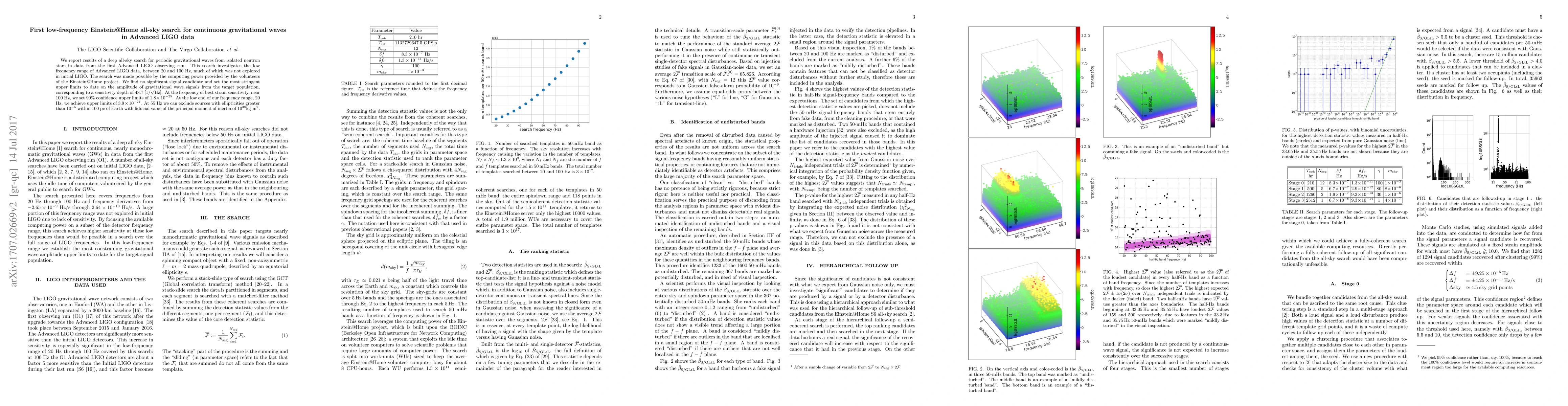 This study reports the first all-sky search for low-frequency continuous gravitational waves using Advanced LIGO data, facilitated by Einstein@Home volunteers. No significant signals were detected, establishing stringent upper limits on gravitational wave amplitudes from isolated neutron stars.