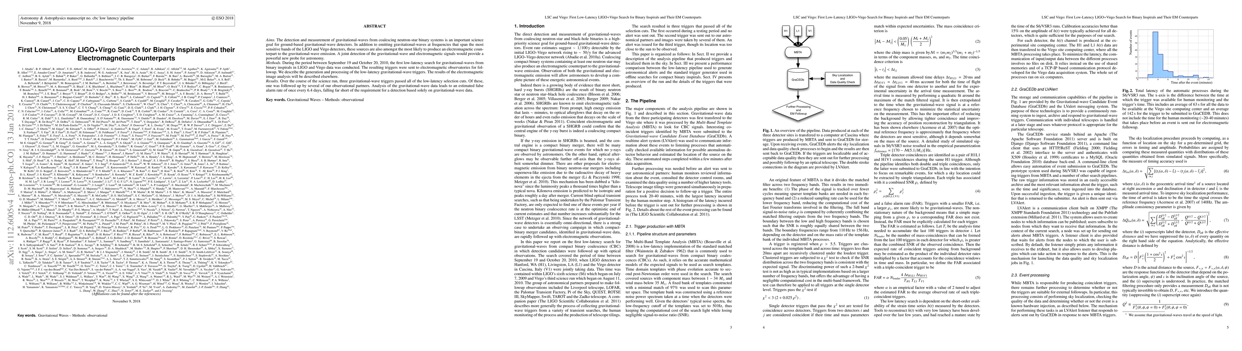 This research presents the first low-latency search for gravitational waves from neutron-star binary inspirals using LIGO and Virgo data, conducted between September 19 and October 20, 2010. The search resulted in three triggers, one of which was followed up by electromagnetic observatories, though no confirmed detection was made.